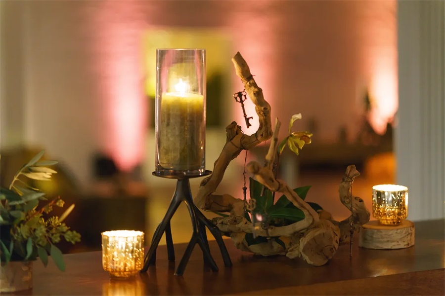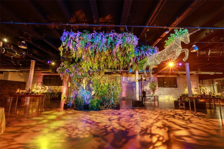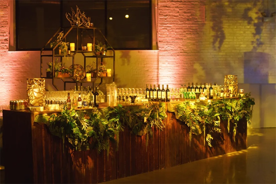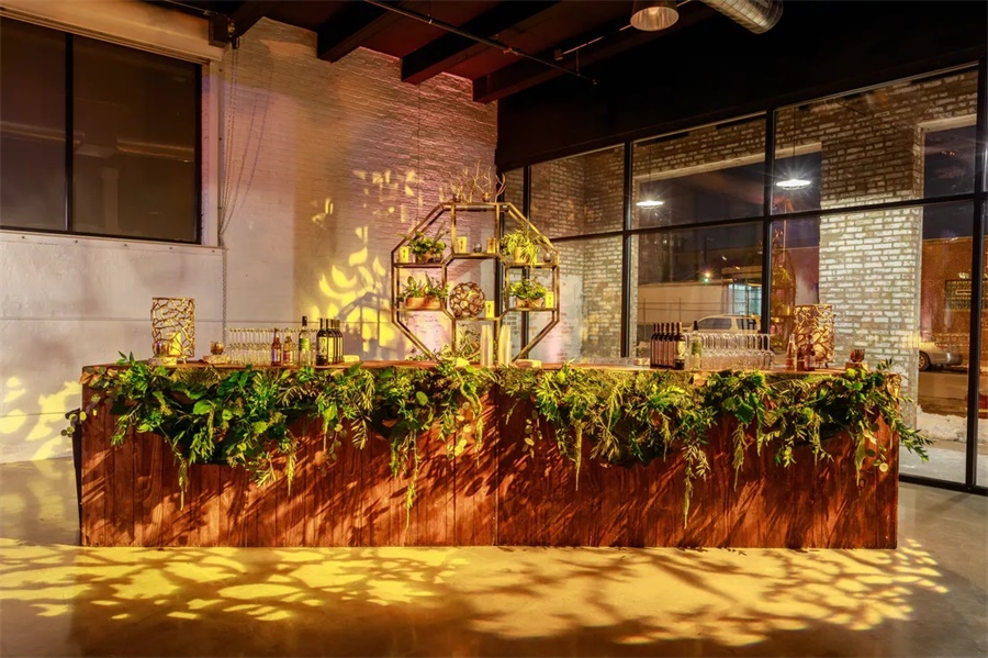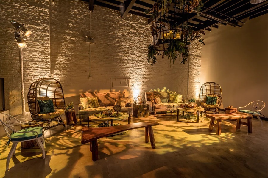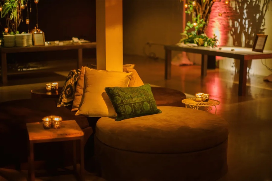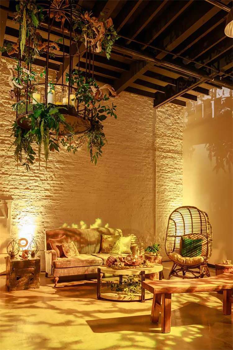 你是否见过处处充满生机的派对活动?你觉得充满生机的派对活动是呈现什么样风格的?一场落日黄搭配绿色和粉色的派对活动,就这样不经意间营造了一种慵懒而不失生机的氛围,派对活动现场通过木质和柳条家具、丰富的绿色植物,再用一个装满蜡烛和绿色植物的圆形鸟笼装置优雅地悬挂在休息区上方,整个派对活动现场瞬间呈现了一种看似慵懒实则生机盎然的氛围,舒服优雅极了。