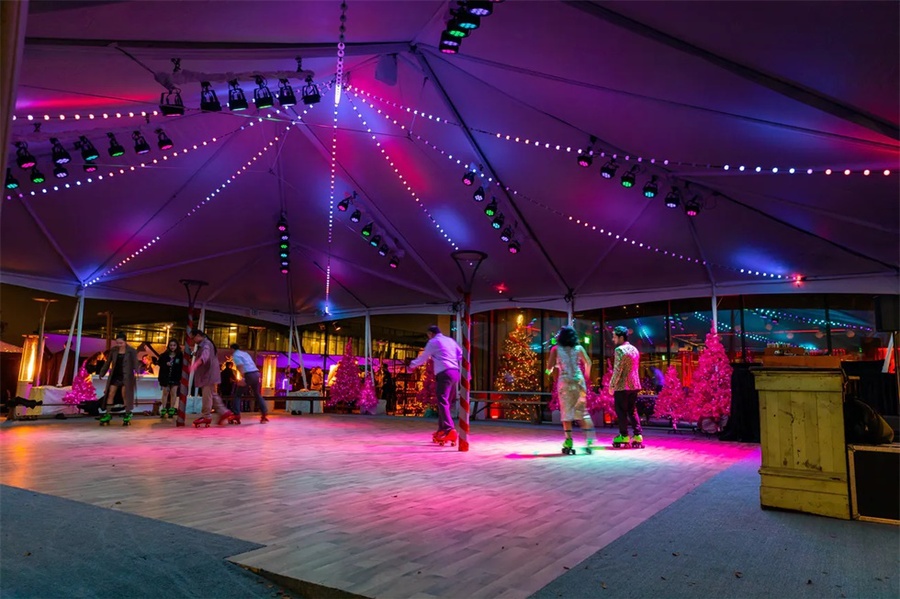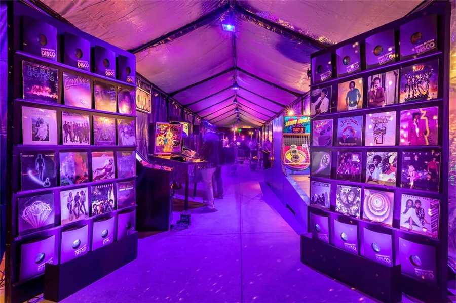80年代的主题节日派对活动应该是怎样的?带你回到过去看看80年代的节日派对,旱冰场、舞池和无声迪斯科,满满的都是记忆点,瞬间拉回了80年代,现场的黑胶唱片墙更是经典中的经典。