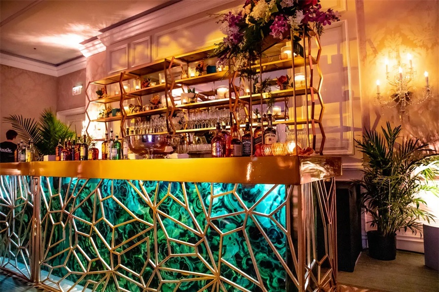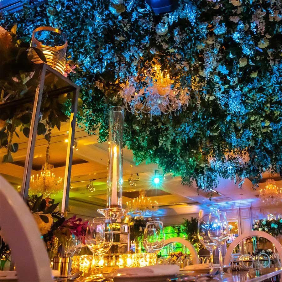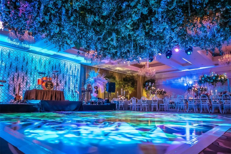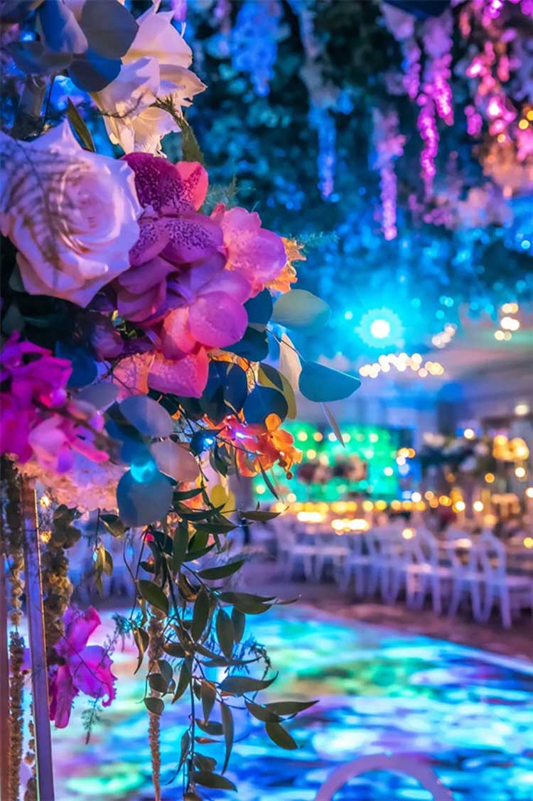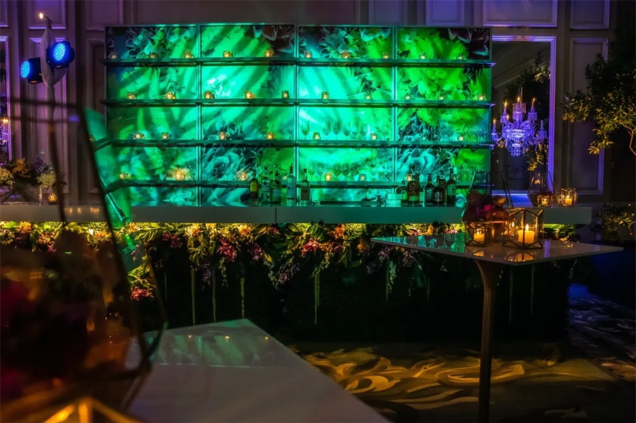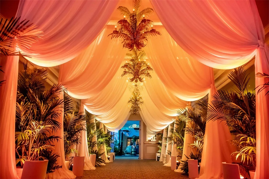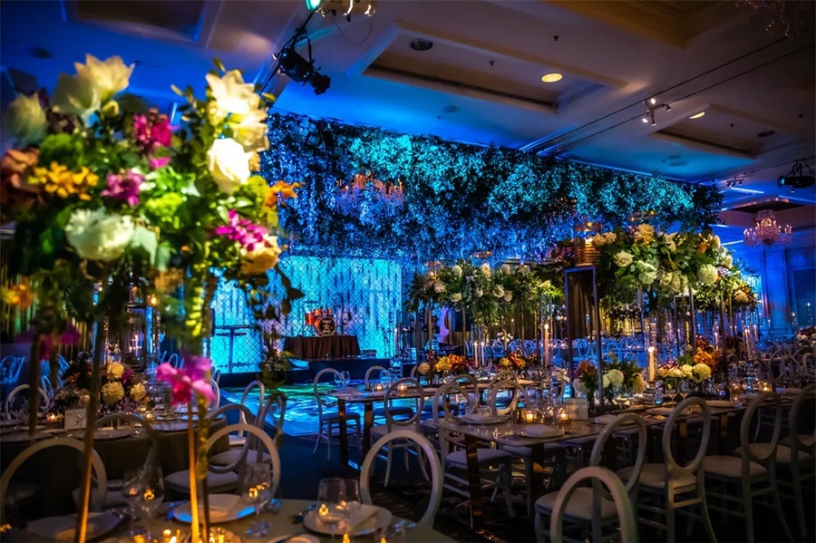印象中热带主题的派对活动现场应该是满满的热带水果和花卉装饰,其实不然。Kehoe公司在芝加哥四季酒店就举办了一场热带主题的企业派对活动,整个派对现场明亮的粉红色、绿色和白色的花卉布置被深蓝色的色调衬托得熠熠生辉,与入口的棕榈树形成了强烈的风格对比,宽敞的舞池和独特的装饰贯穿整个派对现场,一场突破传统概念的热带主题派对活动就这样诞生了,太美了!