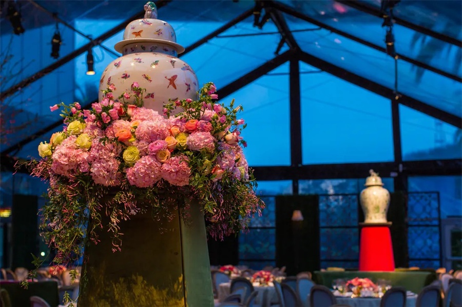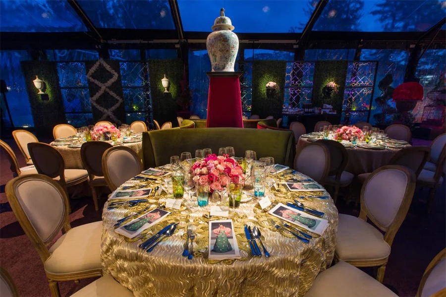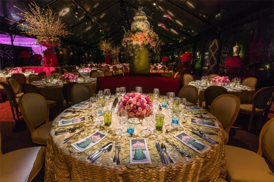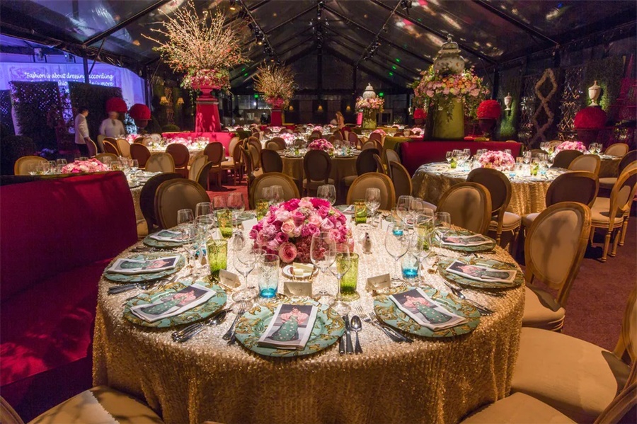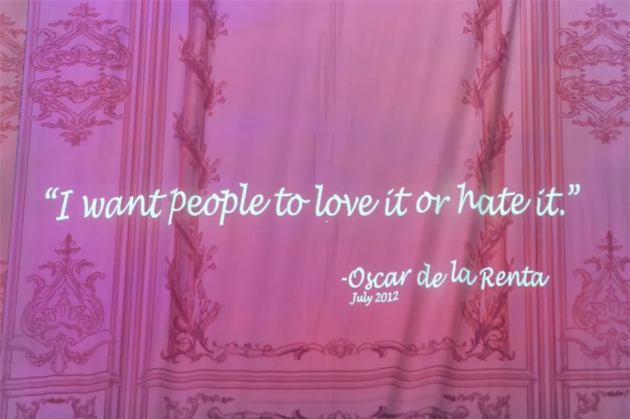 奥斯卡·德拉伦塔是美国十大设计师之一,1973年在美国纽约创立奥斯卡·德拉伦塔公司,主要以经营时装品类为主,其中属高级时装和晚礼服最为有名。这次的奥斯卡·德拉伦塔礼服回顾展晚宴现场粉色帷幔装饰的长廊,瞬间提高了整场晚宴的格调,就连菜单都是精心设计的,看着就觉得高端和有格调。