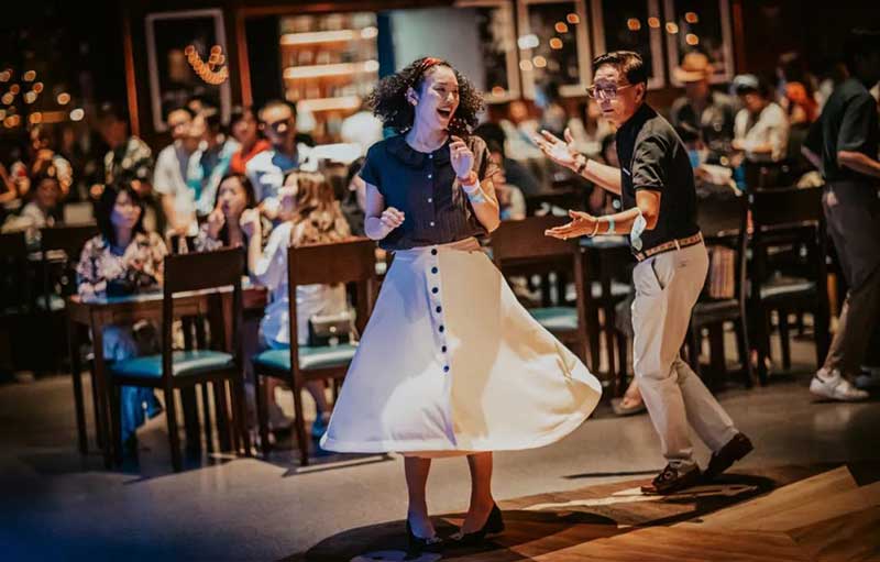 Blue Note Shanghai(中信广场)的蓝调与爵士复古游园派对,有着纯正的蓝调和爵士乐,以及随着音乐响起就能翩翩起舞的人们。在纯正的美式复古风中我还感受到了浓浓老上海风情,要知道,在民国时期的上海滩,受到西方文化熏陶影响的年轻人最时髦的节目就是每周末的舞会,所以后来所谓的上海老克勒们,都比年轻人更会社交舞。