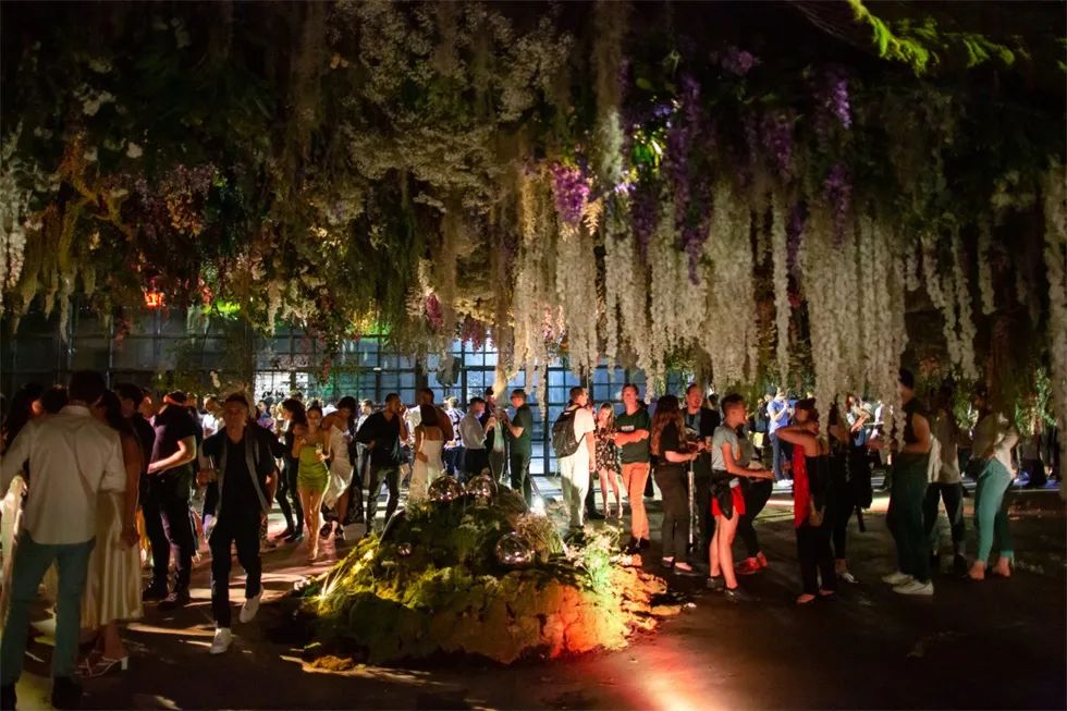 “接骨木花草甸”出现在通常不会有鲜花生长的工业场地,首先创造出了意想不到的情绪。草甸是活动的中心,但并不是客人的唯一体验。在V.I.P.活动的前一天,在附近创作了花卉涂鸦“生长”,作为通往会场的神秘物理通道。进入会场后,通过一个法国风格的门,客人走过一个花卉走廊,浓浓的花香引诱着他们进入活动的主现场。