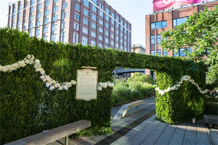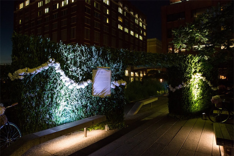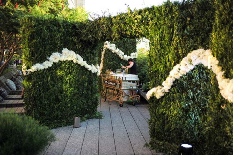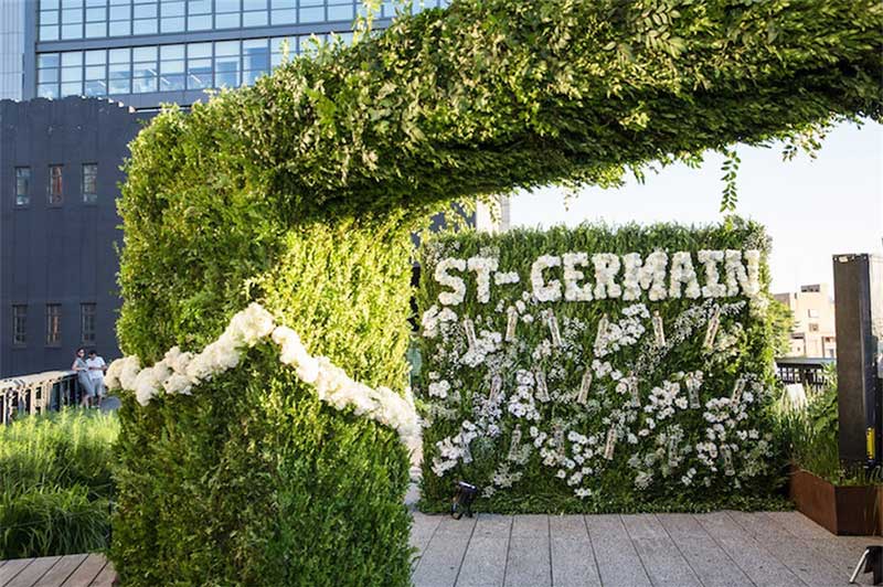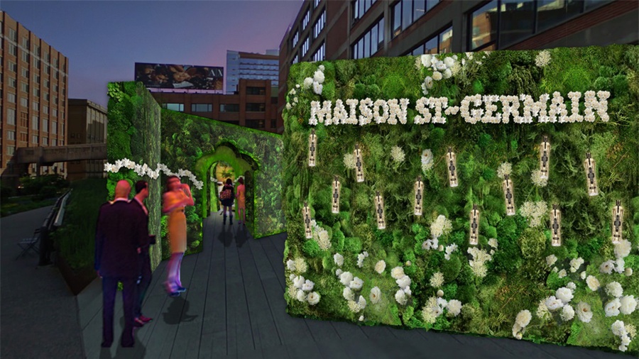 为此,圣日耳曼利口酒在纽约高线公园举办了一场鲜花派对,以庆祝夏天的第一天(夏至)。一进入位于14街的高架公园,首先映入眼帘的是许多身临其境的景观,葱郁的白花组成的绿色墙壁拼出了“圣日耳曼酒庄”的字样。绿色植物继续穿过颓废的环境和悬垂的分隔植物组成的迷宫。