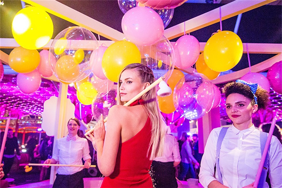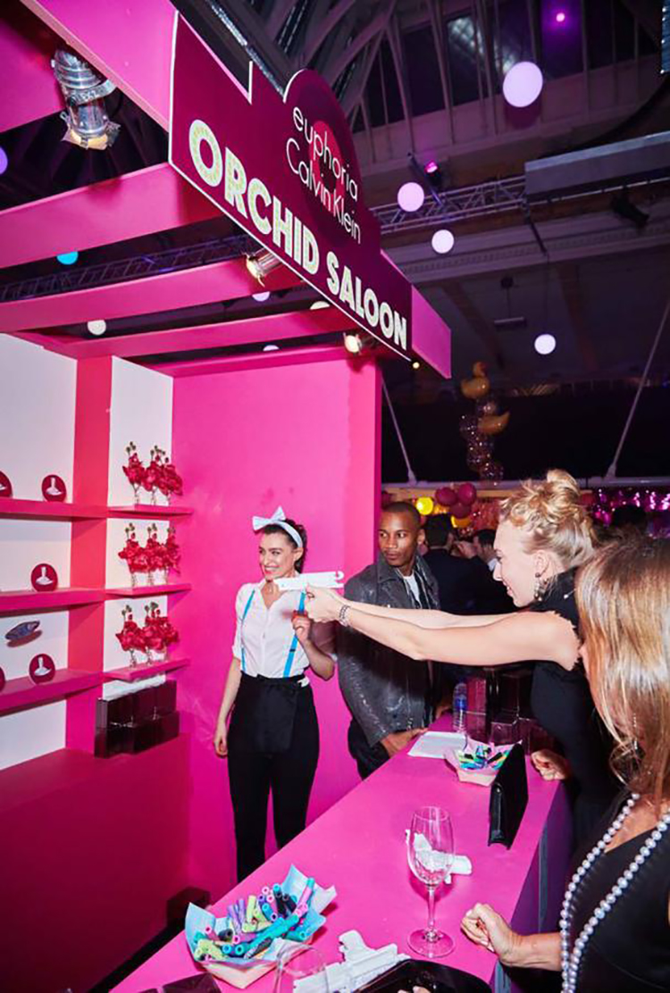 这次慈善筹款活动邀请了时尚界的顶级品牌,每个品牌都为来宾们策划设计了自己的品牌娱乐项目,包括主赞助商卡尔文·克莱恩(Calvin Klein)制作的“射击场”游戏,由埃里克·安德伍德(为数不多的黑人芭蕾舞演员)主持,是现场最引人注目的游戏,客人们在这里看到了派对主人纳塔莉亚和卡尔丽的精彩对决。
