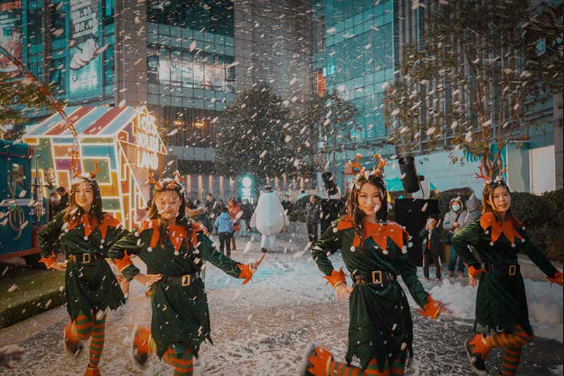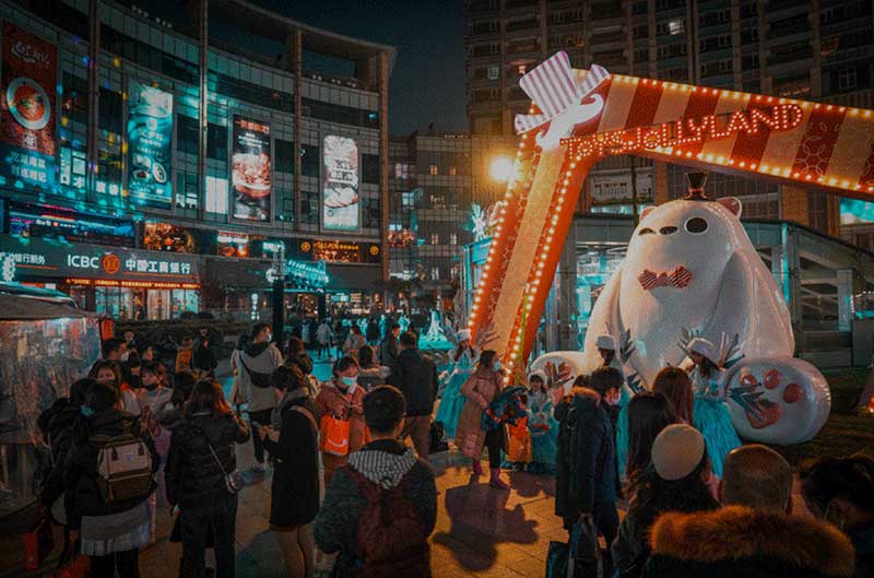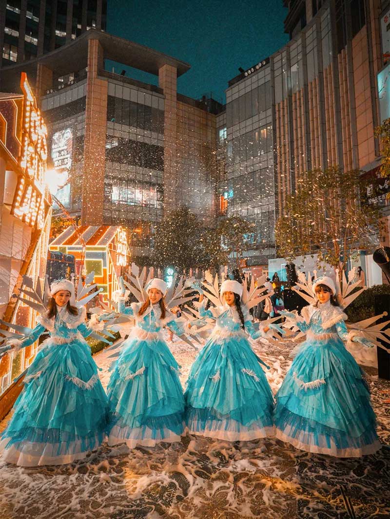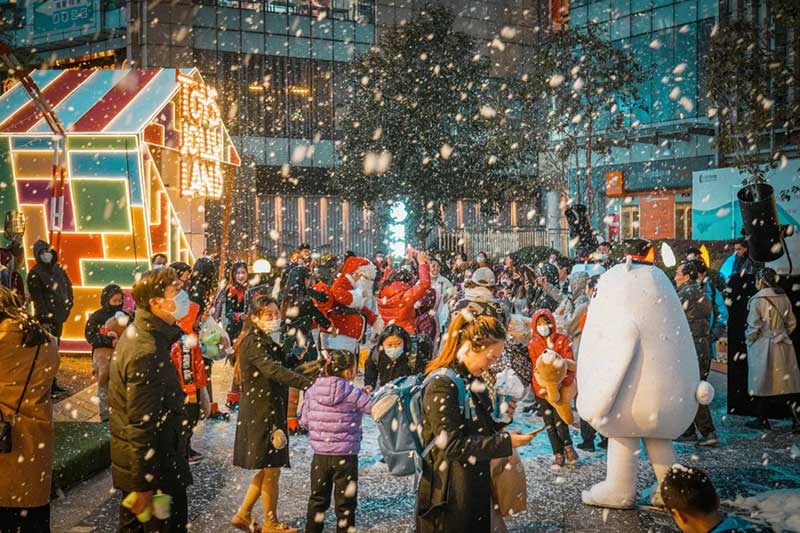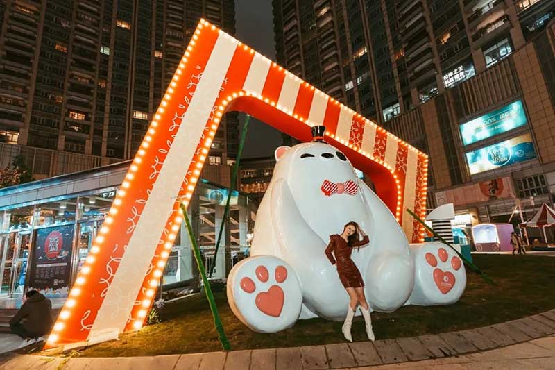 等到夜色逐渐深沉,天空飘起纷纷扬扬的雪花,绵延整个冬季的思念在这一刻化为了实体。每逢整点的大雪纷飞让所有人不禁为之沉醉,浪漫因子飘散在空气之中,氤氲了冬日的寒冷。漫天飘雪的时刻,还有可爱的布丁人偶相伴漫步于雪中。与相爱之人携手一起赏雪景,看眼前世界晕染成银装素裹的美丽梦境。这只可可爱爱的巨型玩偶,就是日月光此次特意打造的IP形象——布丁,憨态可掬的玩偶默默地坐在草坪上,期待给你一个大大的暖心拥抱。