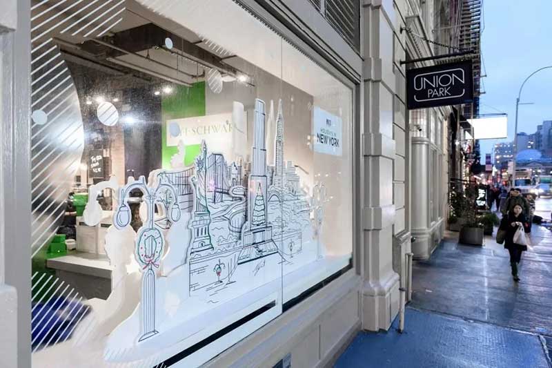 联合公园(活动场地名字)的入口是向纽约著名的玩具店FAO施瓦兹(FAO Schwarz)致敬,它被赋予了一个贴切的新名字,叫NYI 施瓦兹(NYI Schwarz)。内置的单色时装,这个模拟的玩具店作为了活动的登记区,并在这里展示纽约的立体天际线(插画风格的设计)。玩具兵们在快闪时刻登上地铁台阶,伴着艾丽西亚·凯斯(歌手)的《纽约》(歌曲)起舞,在洛克菲勒中心上演了一场精彩的表演。