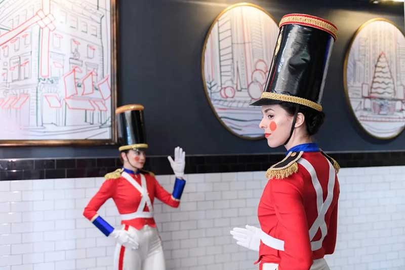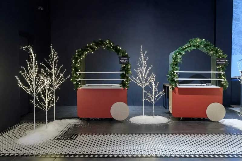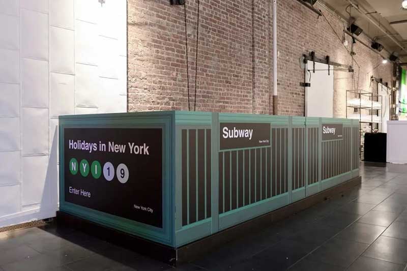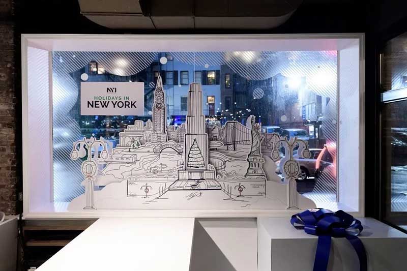 在纽约互联有限公司的节日派对上,活动在重现纽约最具标志性的度假地点,让客人沉浸在故事书般的旅程中。活动从一个喜庆的节日橱窗旁进入,经过一个受纽约著名的FAO施瓦兹玩具商店启发的玩具店,在活动现场他们将穿越城市的各个景点。在进入通往洛克菲勒中心的地铁站之前,客人们会经过挤满了街头手推车的中央公园和它著名的溜冰场,在这里可以来一张完美的照片。他们在唐人街吃饭,在广场酒店的壁炉旁舒舒服地休息一下,最后,还可以吃一顿奶昔小屋卡车的夜宵。