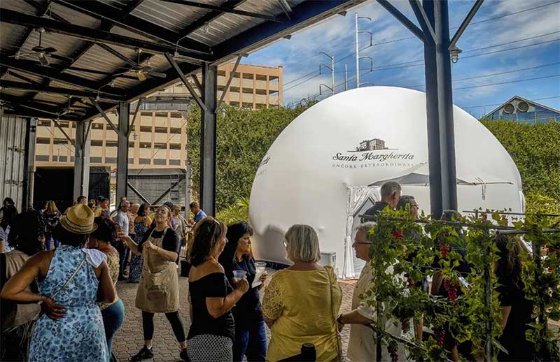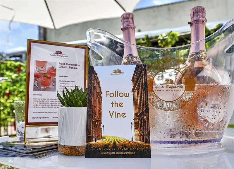 活动现场搭建了一个简易的“葡萄园迷宫”,沉浸在“葡萄迷宫”中的客人在每一个角落,都会发现圣玛格丽塔鸡尾酒的惊喜和与食物独特搭配。在迷宫的尽头,一个圆顶“剧场”让客人沉浸在一个美丽而壮观的品牌故事演绎中。在这里,客人们在品鉴师的引导下,品尝了圣玛格丽特的四种葡萄酒。