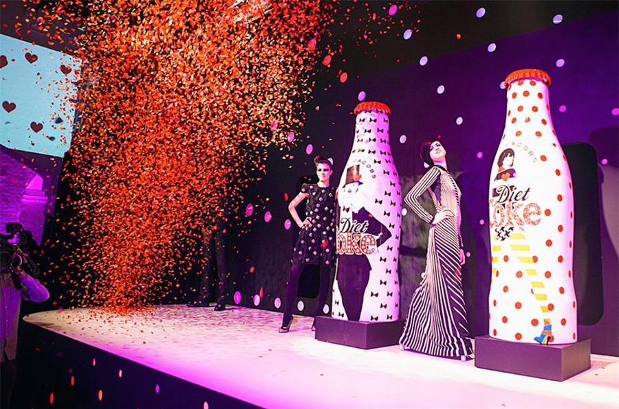 自2003年以来,可口可乐一直与一些最有影响力的设计师合作,如Matthew Williamson,Carl Lagerfeld和Jean Paul Gogh,希望将可口可乐和健怡可乐瓶变成营销导向的内容。为了纪念健怡可乐30周年,我们邀请Marc Jacobs设计代表80年代,90年代和2000年代的瓶子。为了庆祝这一里程碑,我们在伦敦举办了一场盛大的启动派对,使活动的口号“闪耀了30年”成为现实。