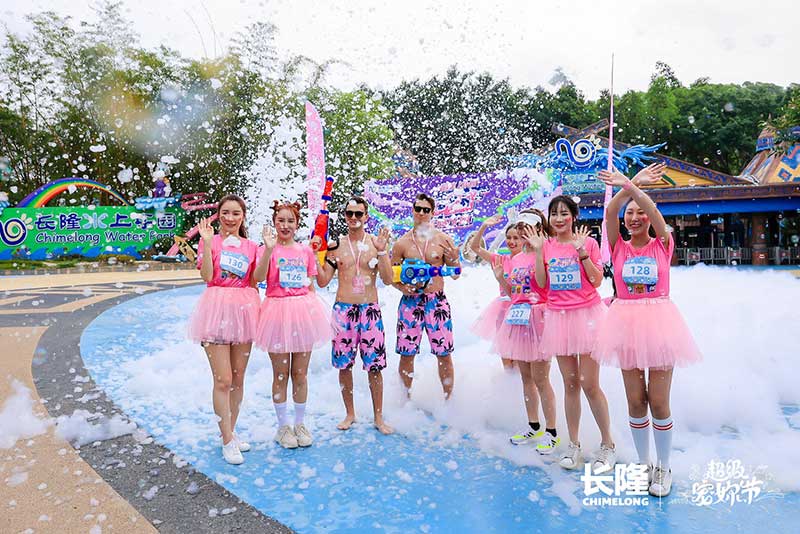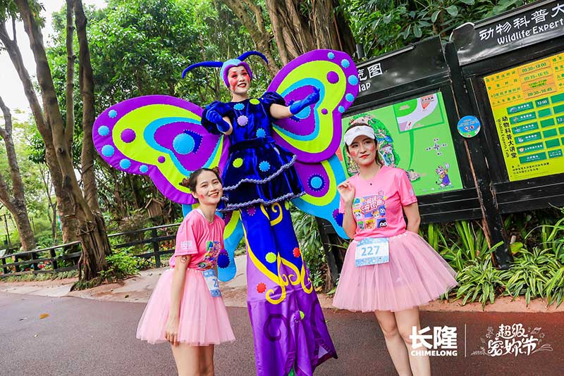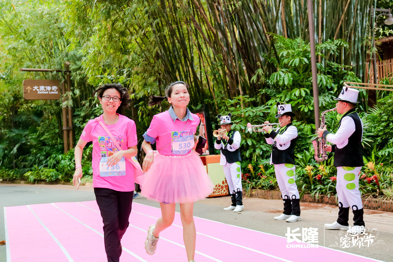 “碰——”随着一声发令枪响,卡卡、琦琦“化身”领跑员跑在了队伍最前面,成为全场最受瞩目的两个,它们一边奔跳,一边摆动双手与跑友击掌相互鼓劲。通过粉色跑道,跑友们来到欢乐小镇牌坊前,在这里和小丑开心互动,在通过欢乐世界垂直过山车、大摆锤后,大家来到了欢乐国潮街,樱花树下一边感受梦幻泡泡,一边打卡国潮装置,眉欢眼笑,途经即将开放的长隆水上乐园时,迎接跑友的是水枪互动,水花下,女神们纷纷与性感型男模特合照留念……来到设在长隆野生动物世界考拉广场的终点,卡卡、琦琦再度现身,与跑友们一起欢乐拍掌,庆祝完成全程的喜悦。