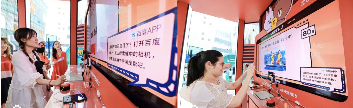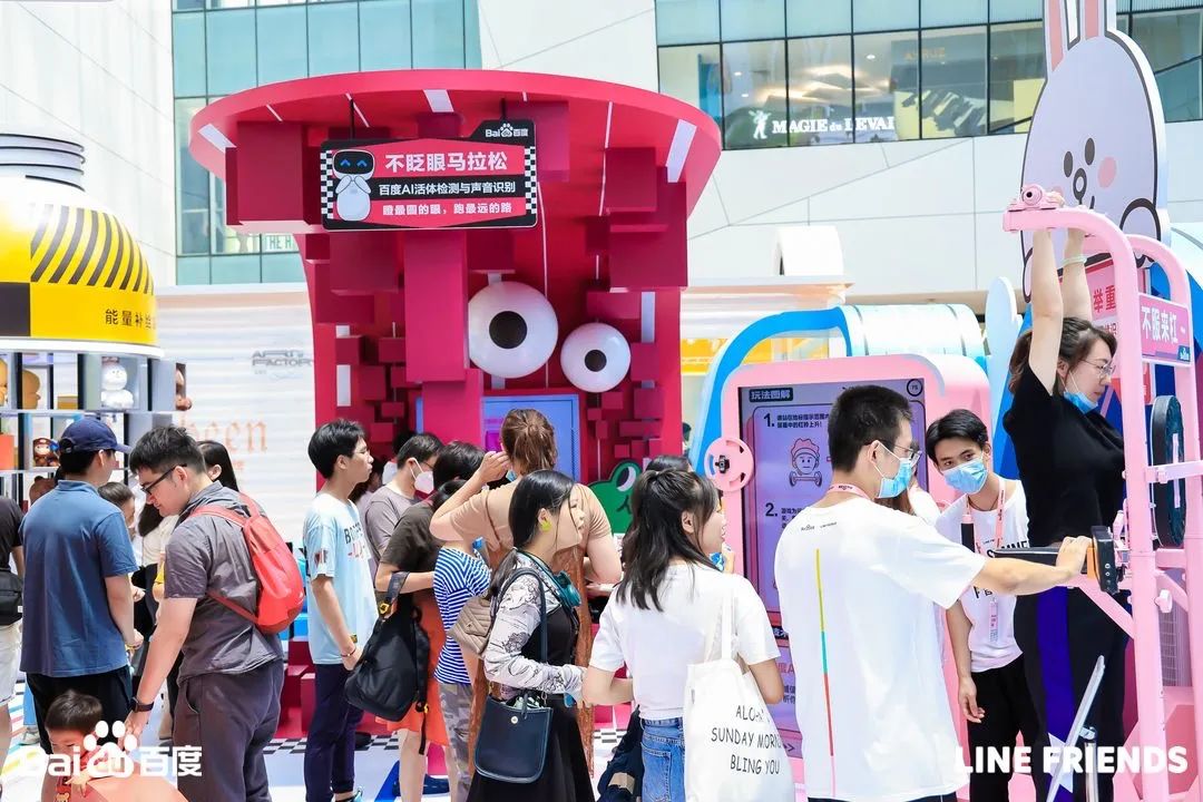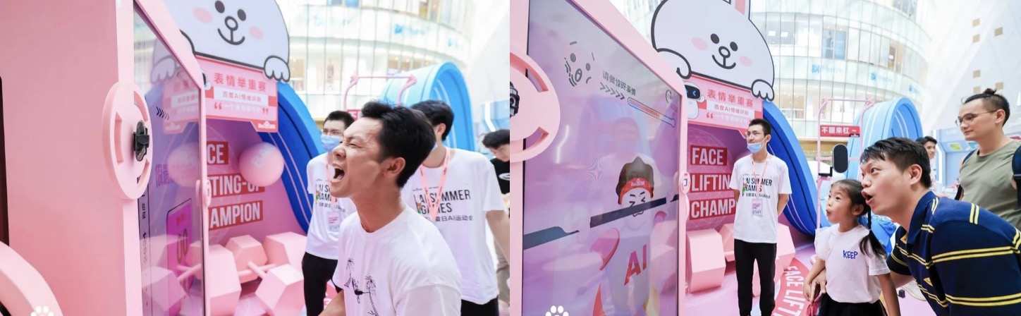 百度跨界LINE FRIENDS空降厦门,举办了一场很新鲜的「夏日AI运动会」。这场AI运动会也一样,在Line up处扫二维码进入H5小程序报名参加后,百度AI人脸识别技术就会为你匹配最佳萌友。布朗熊、可妮兔、爱德华、莎莉、蛙里奥这五大战队,你想pick哪个?拥有专属二维码后,就可以到各个代表不同情绪与体育精神的AI体验互动区玩起来啦,“表情举重赛”AI体验互动区,释放出童真与快乐。利用大笑、惊讶、愤怒三个表情,控制屏幕内虚拟人物举重,五官已经拧成亲妈都不认识的样子,围观的人也都笑到掉头。