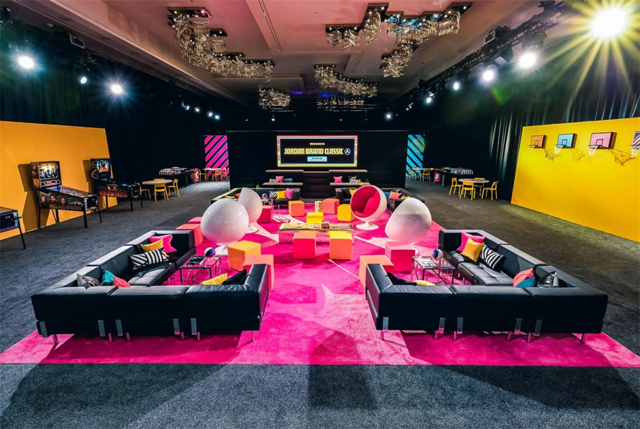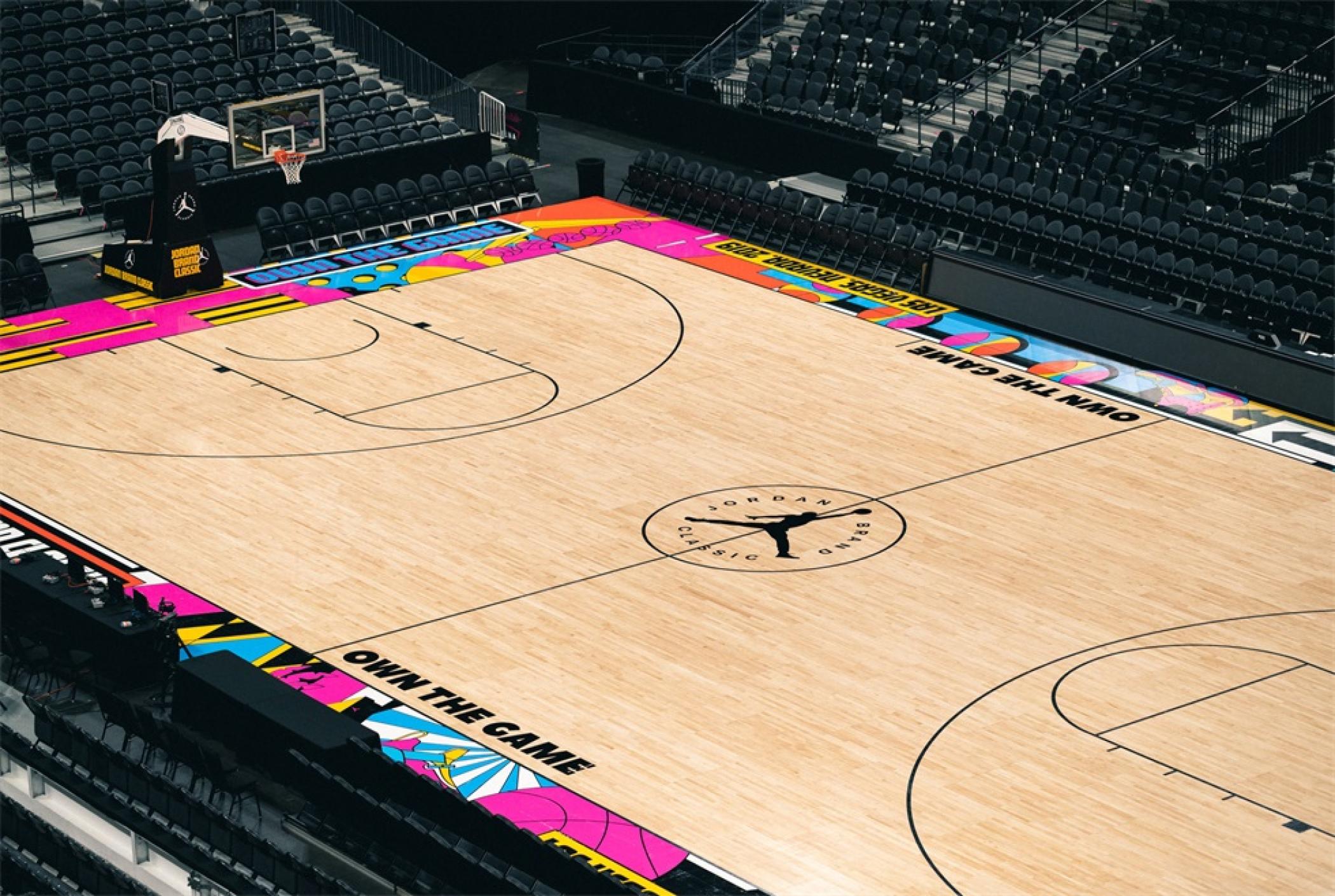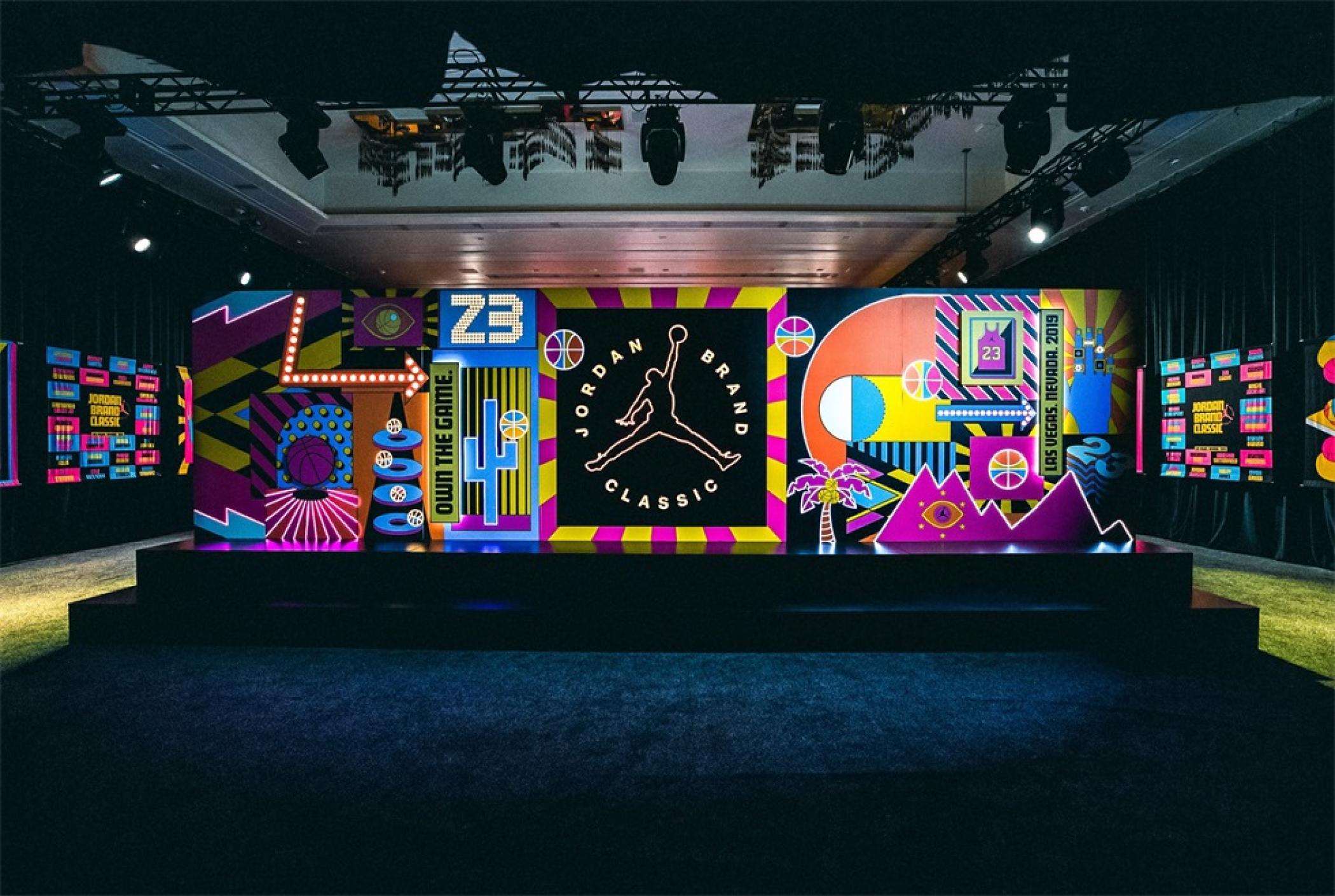这次的赛事在拉斯维加斯的德国电信体育场(T-Mobile Arena)举办,活动进行乔丹品牌的品牌化设计和活动激活,在学生和乔丹品牌之间创造难忘的体验。期间,球员休息室不对公众开放,只对球员开放。进入后,球员们看到了一面带有霓虹灯风格的大型图形墙,重复借鉴了拉斯维加斯当地的美学。房间内提供了各种互动功能,包括乔丹服装展示墙、GIF动画照相亭、压缩靴等恢复设备、供球员放松或玩X-Box和弹球机的休闲空间,以及圆形剧场式座位让他们观看演讲。