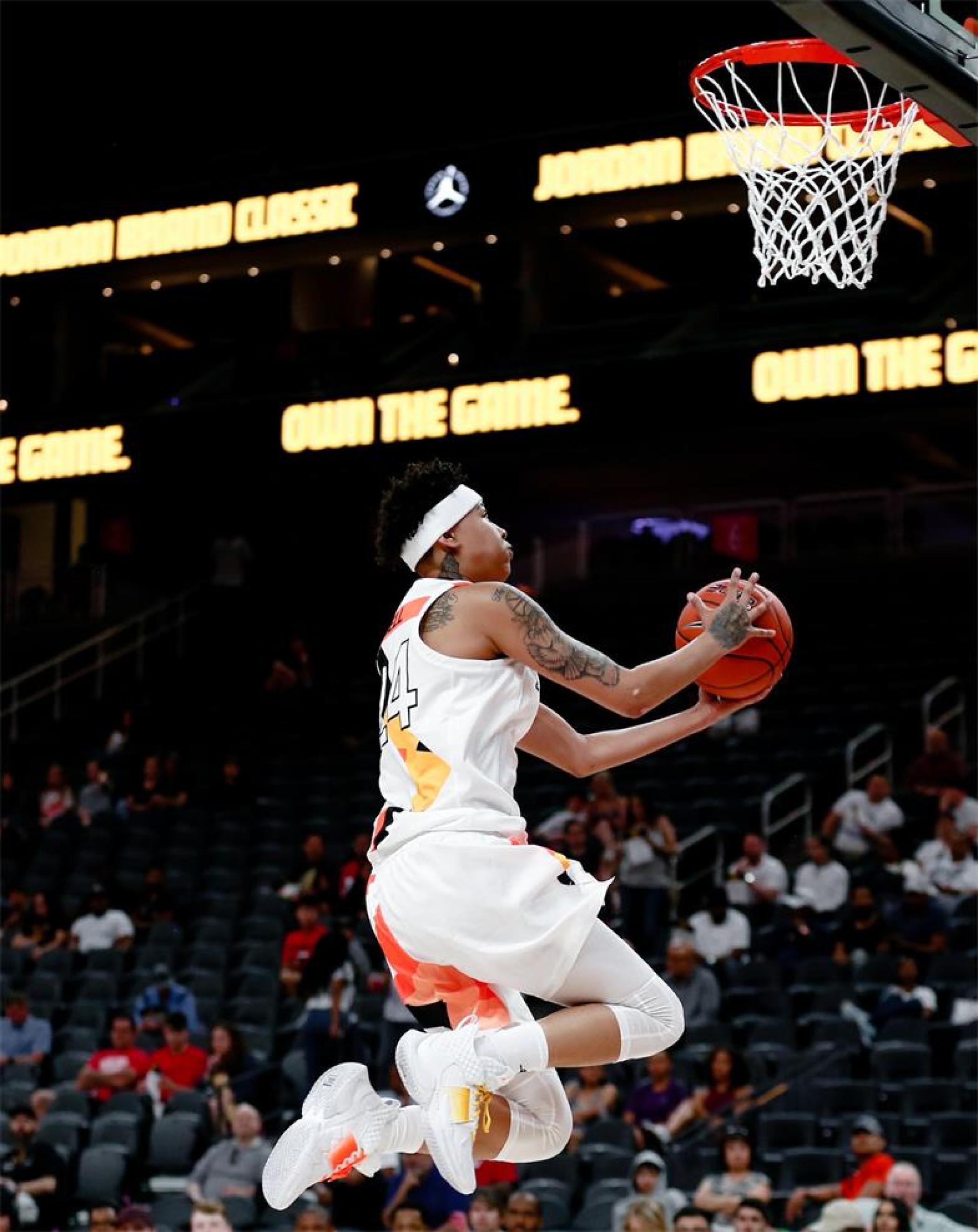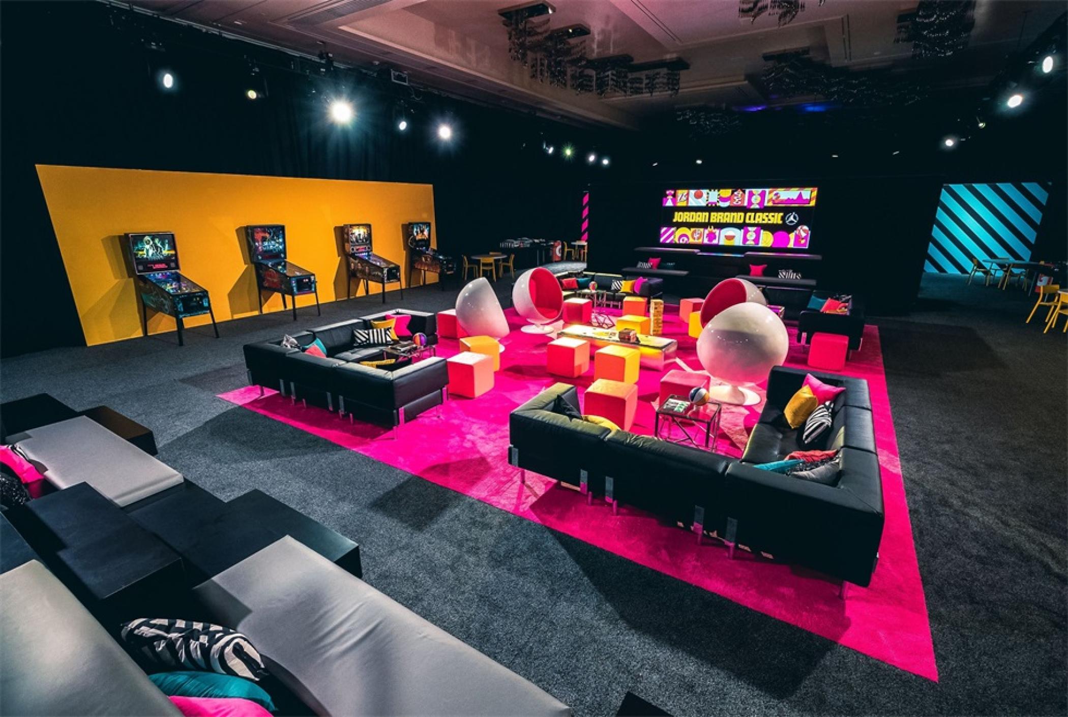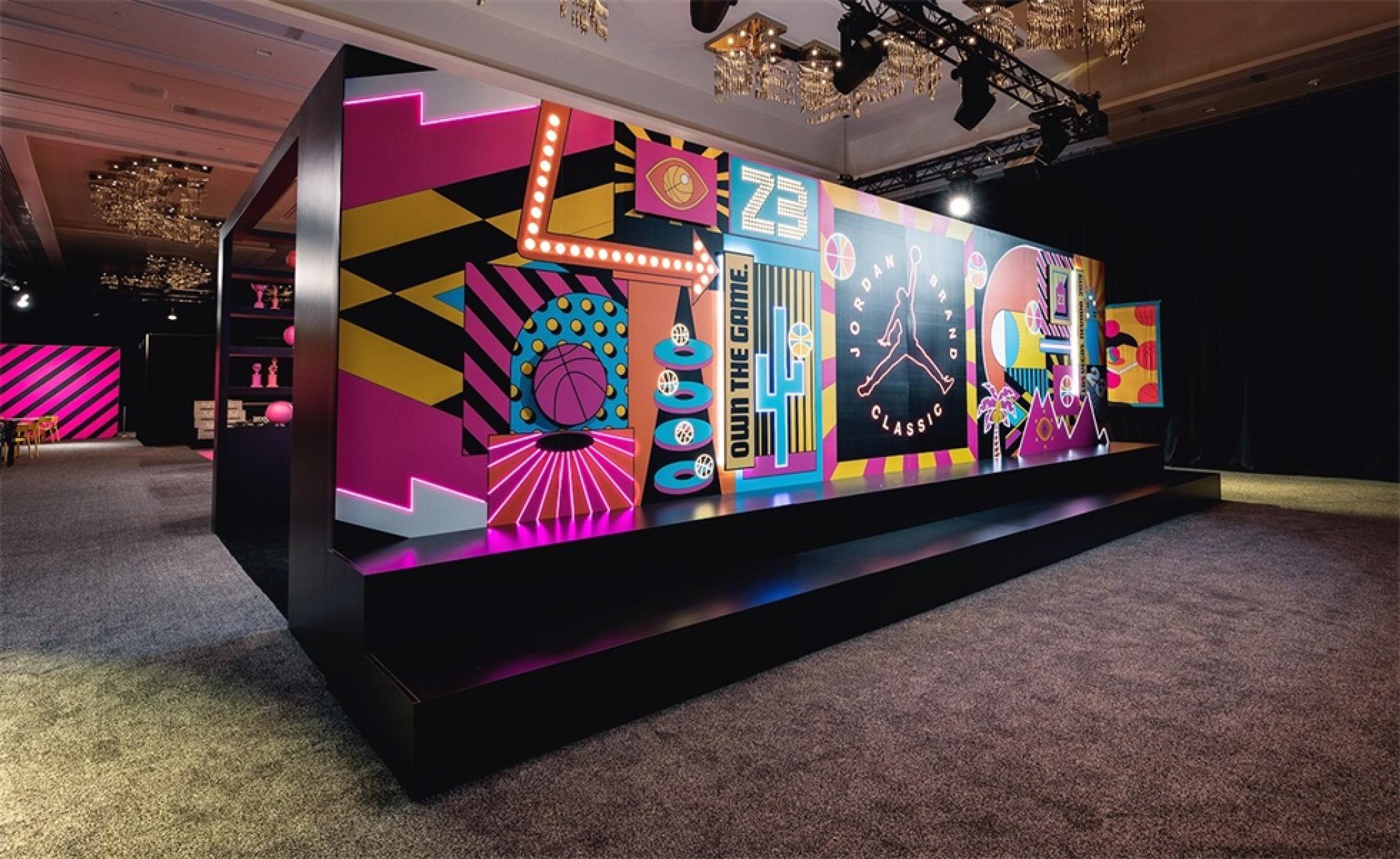 这次的赛事在拉斯维加斯的德国电信体育场(T-Mobile Arena)举办,活动进行乔丹品牌的品牌化设计和活动激活,在学生和乔丹品牌之间创造难忘的体验。期间,球员休息室不对公众开放,只对球员开放。进入后,球员们看到了一面带有霓虹灯风格的大型图形墙,重复借鉴了拉斯维加斯当地的美学。房间内提供了各种互动功能,包括乔丹服装展示墙、GIF动画照相亭、压缩靴等恢复设备、供球员放松或玩X-Box和弹球机的休闲空间,以及圆形剧场式座位让他们观看演讲。