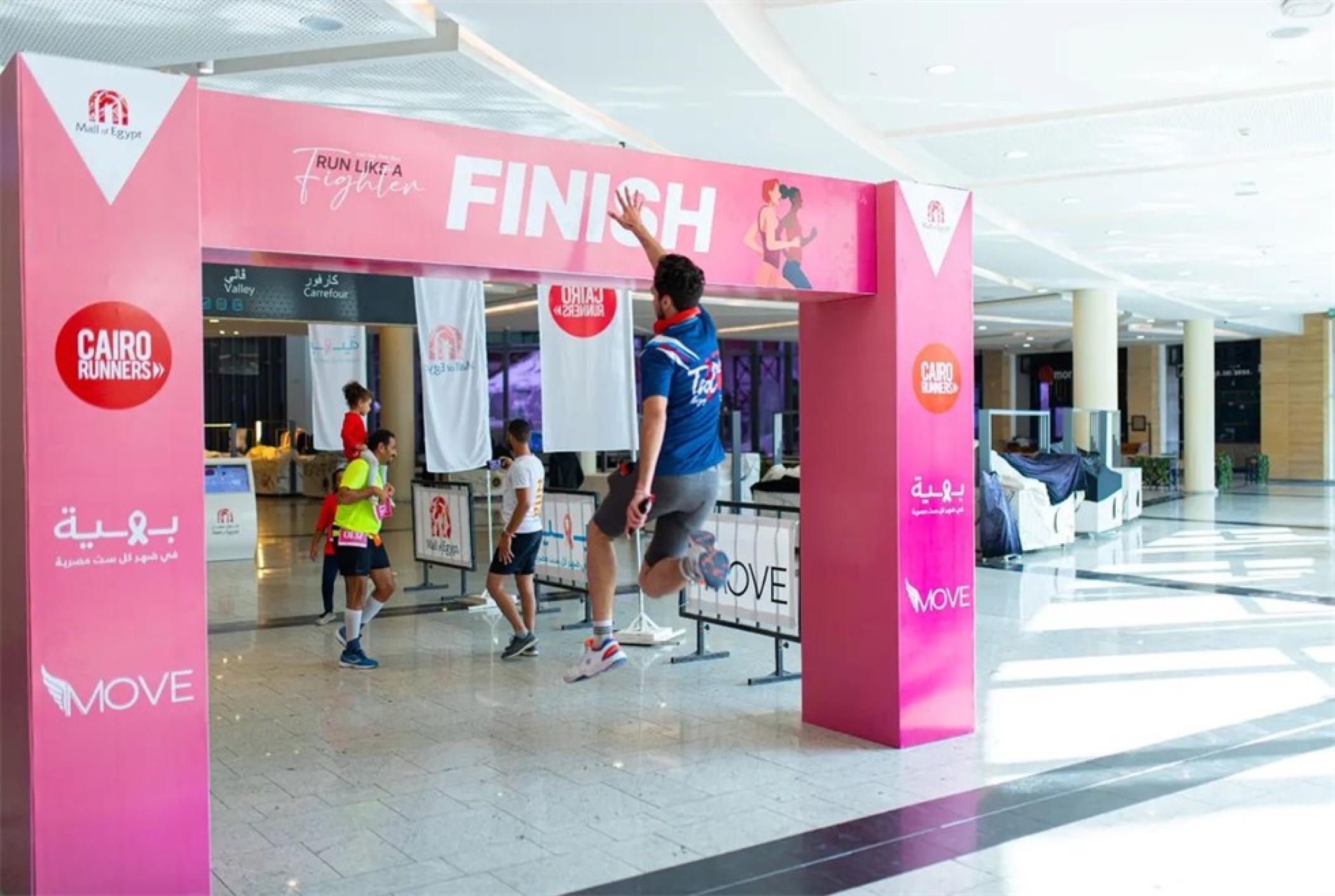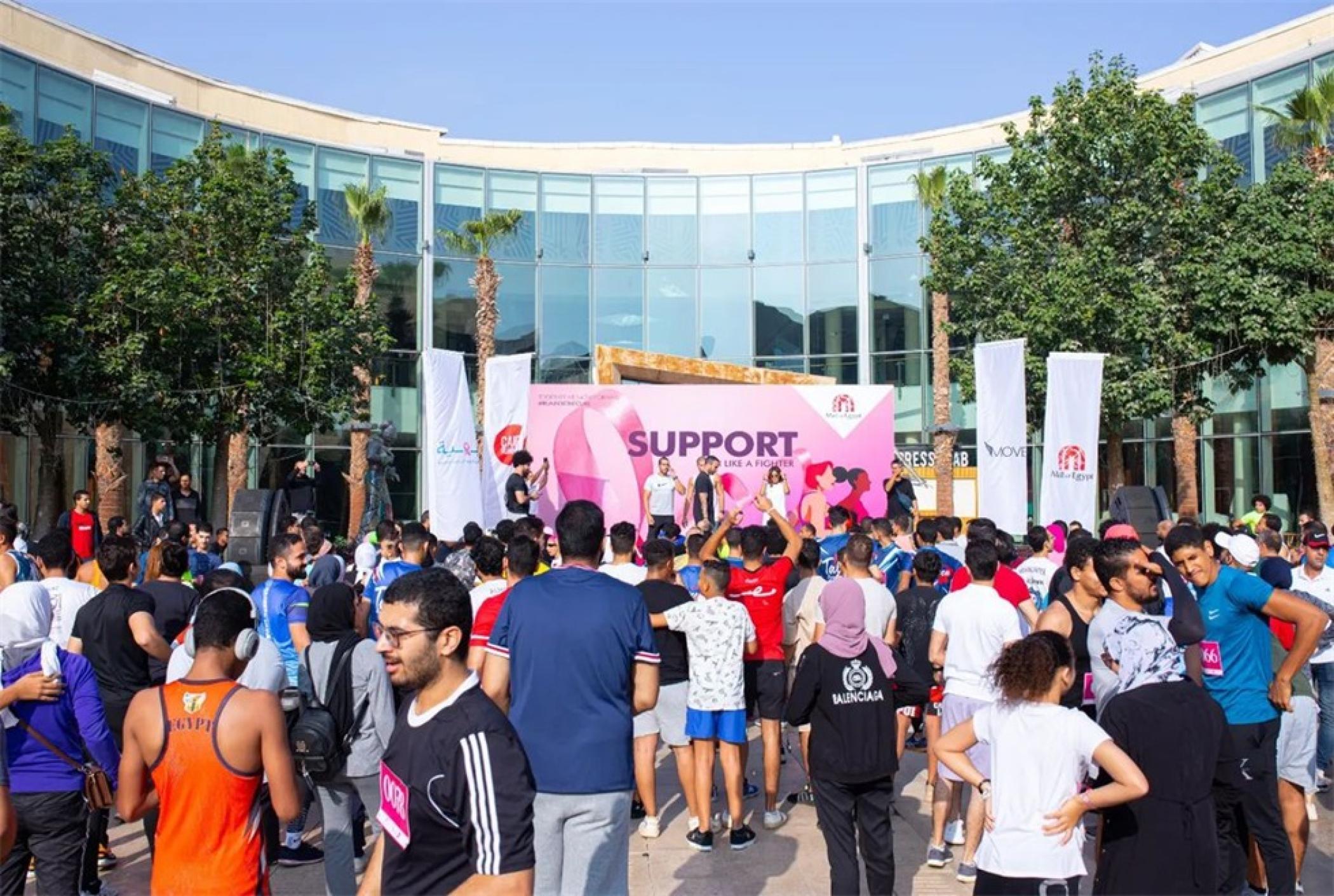 埃及购物中心(Mall of Egypt)是迪拜的阿联酋马希德·阿尔·弗泰伊姆集团在埃及投资的购物中心。埃及购物中心在购物中心内部举行了“粉红跑”活动,以赞美那些面对乳腺癌的女性力量和支持乳癌斗士和乳癌幸存者,同时还向大众宣传乳腺癌知识,为了健康而跑,为了支持而跑。
