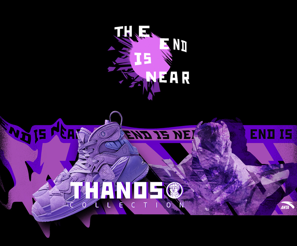 为了使创意内容与逻辑最大程度的贴近漫威系列,此次广告预热的主推款选择了近期两部电影中的决定性角色:灭霸与惊奇队长。在迪士尼监修的诸多限制下,我们为这一系列联名鞋款的发售量身打造了一套专属视觉语言。