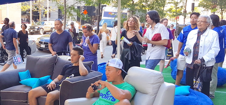 此次体验式品牌激活活动包括了:现场搭建了模拟的橄榄球球场、超大的层层叠游戏,身穿DirecTV品牌球衣的九名品牌大使组成的巡回队伍,提供DirecTV品牌的自拍道具、抛豆袋游戏,活动现场还提供了DirecTV品牌帐篷与沙发,躺椅,咖啡桌以及一整天视频播放橄榄球大联盟的周日比赛。