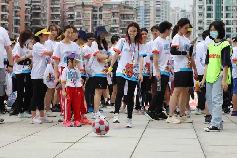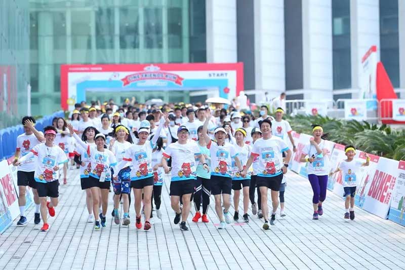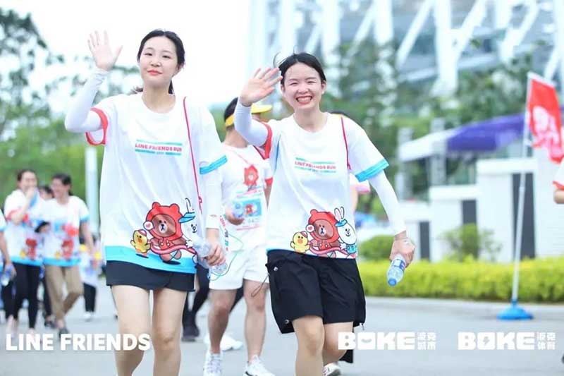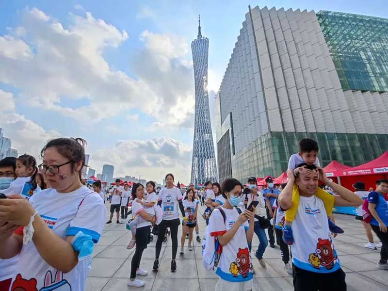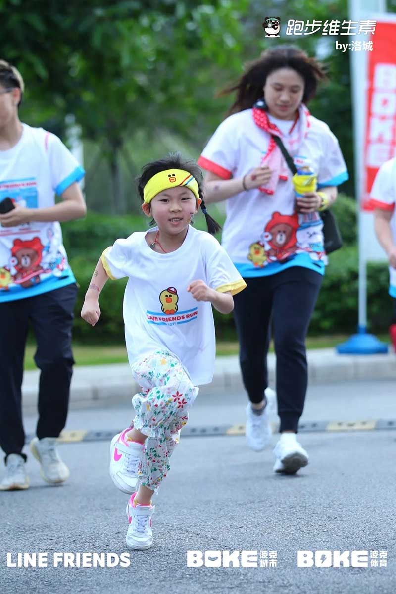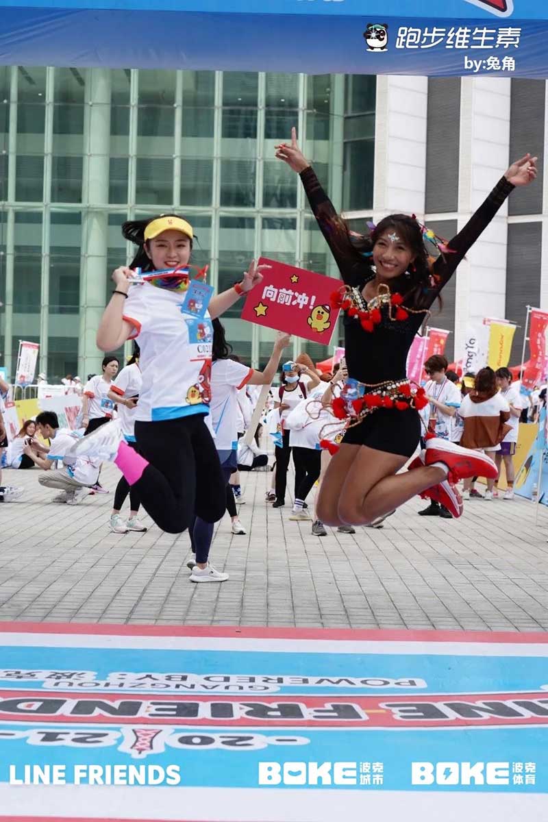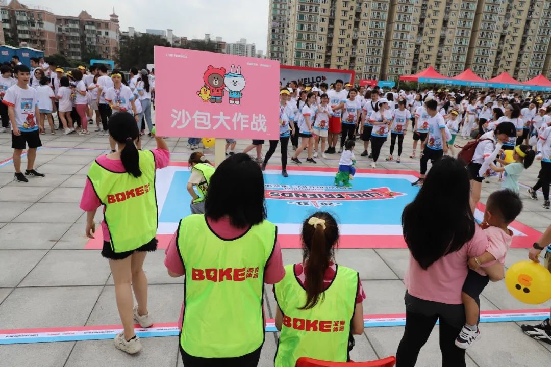 2021年羊城运动汇-花城欢乐跑-LINE FRIENDS RUN在广州国际媒体港欢乐开跑,超过2000名大小萌友踊跃参与!大家提前拿到可爱的能量物资包,穿戴好限定装备准备出发。欢笑声、欢呼声,加上振奋人心的音乐声,汇合成欢乐海洋。温顺的布朗熊、活泼的可妮兔等卡通人物一直为大家加油,冲向5KM终点更有动力啦,初夏美好的运动时光就该如此!