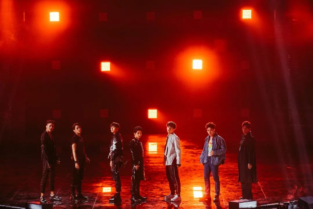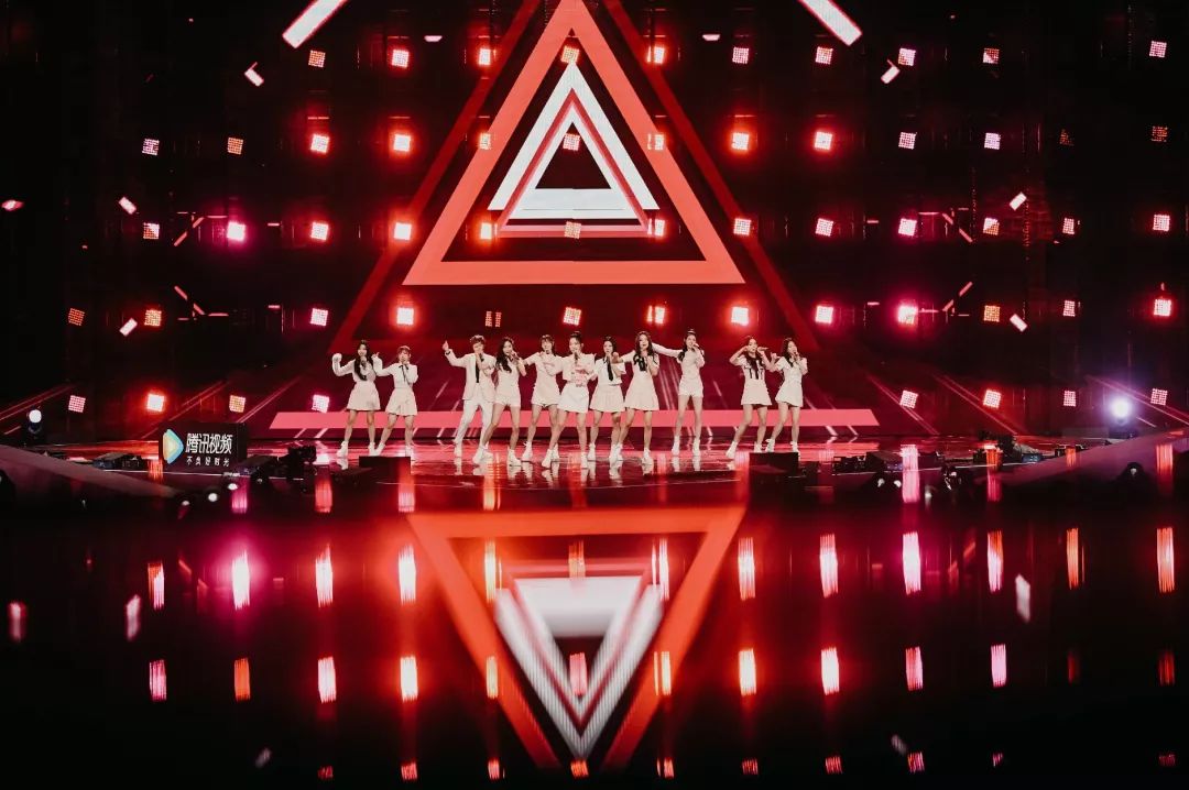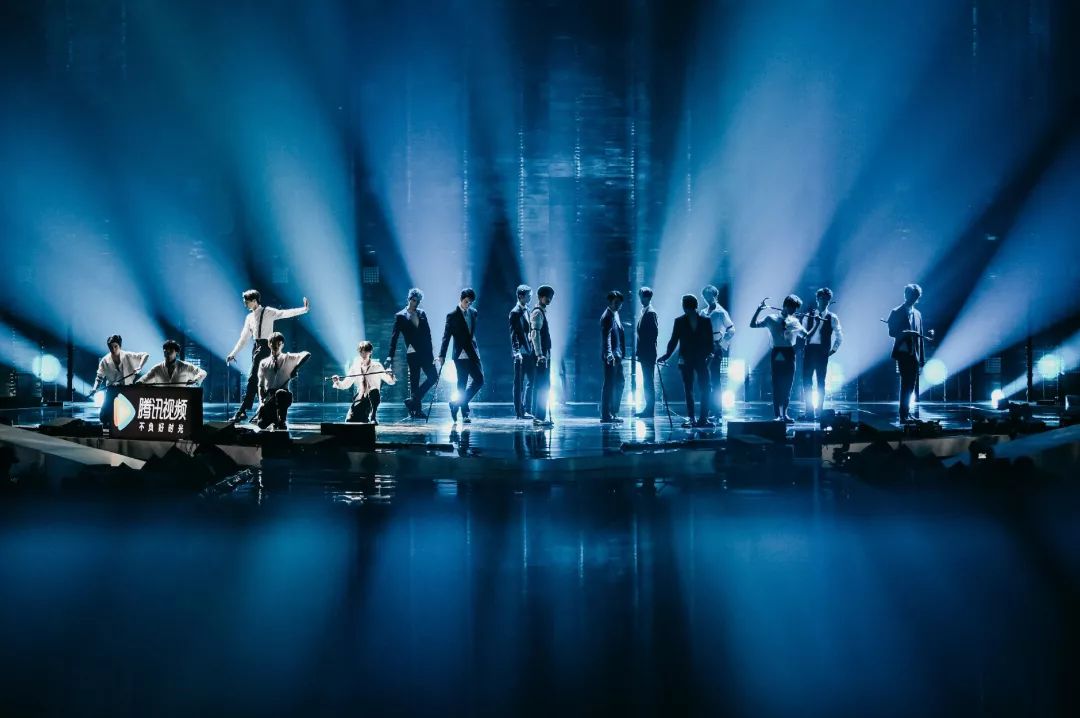 总决赛的舞台分为:主舞台、5层升降屏、廊桥、副舞台与导师嘉宾席。相比以往舞台设计,主舞台做了升级,安装了13m*42m冰屏,打造“船头”造型。灯光设计方面则采用了7行31列1.7m*1.7m见方的无极摇头灯墙,为创造营添加和大屏的视频素材相同风格的bit map素材,增添舞台视觉层次和舞台空间的前后纵深。主舞台上空由6道数控梁分别安装了LED 蜂眼和三合一,6个4m*3m数控灯拍,结合数控的造型多样形成千变万化的视觉效果,为成团夜的表演曲目的增加光感律动。