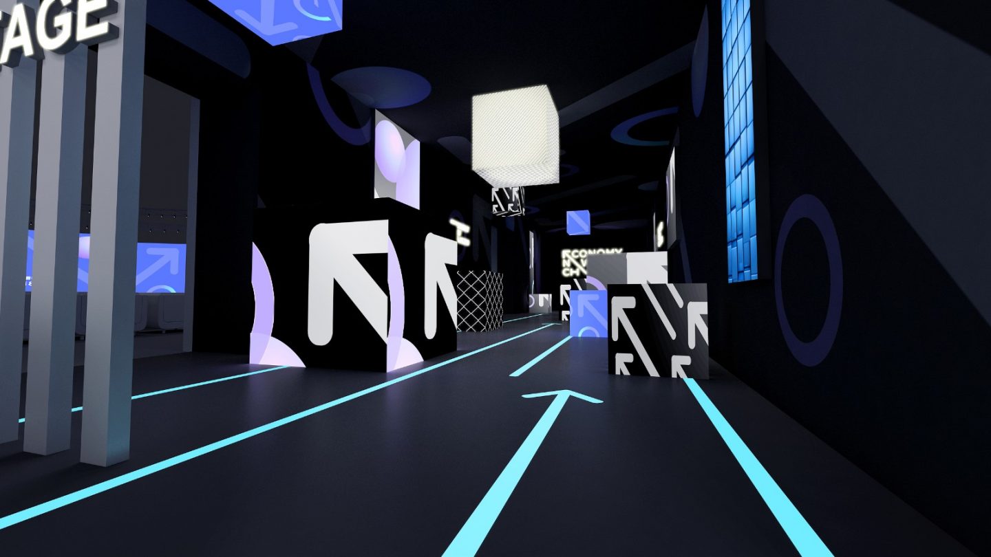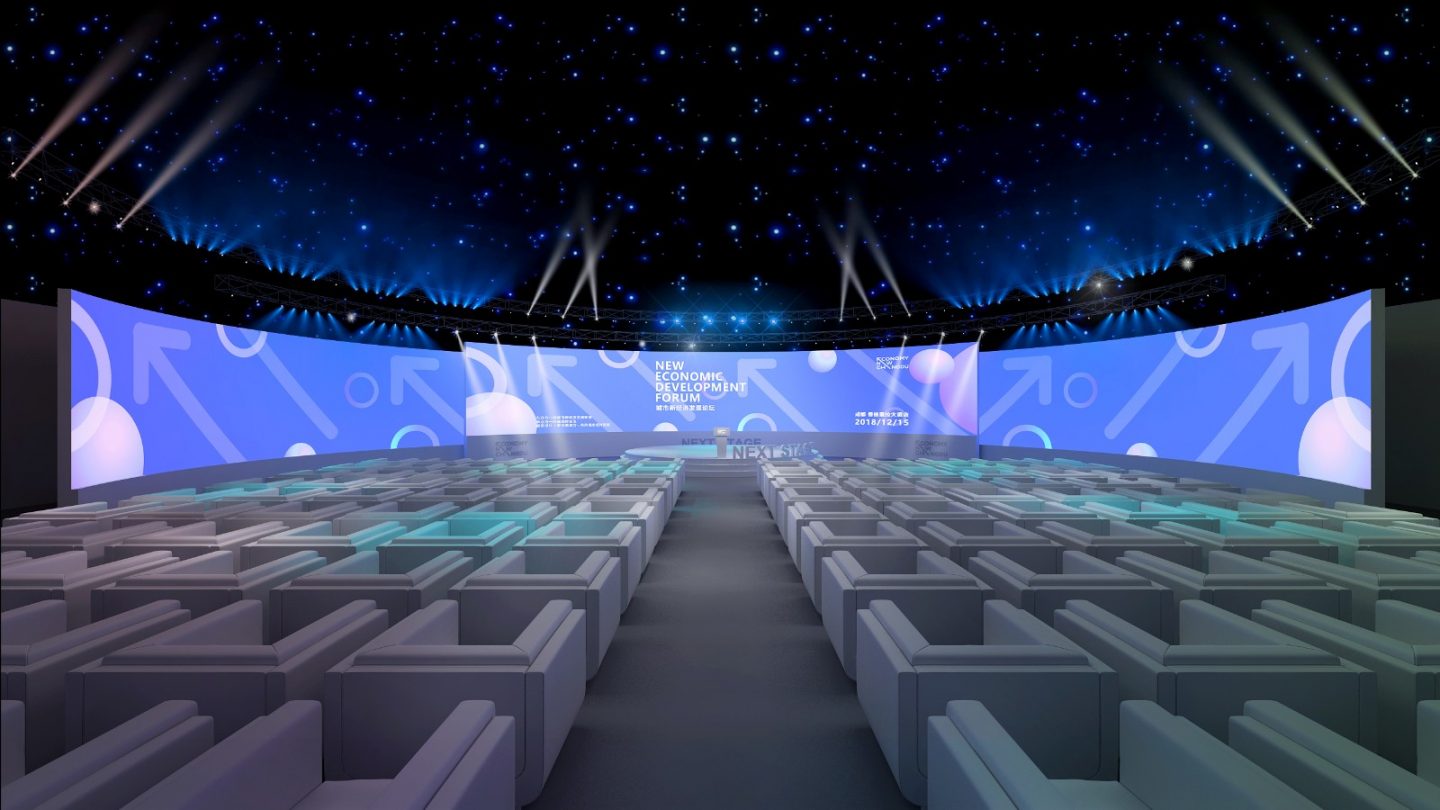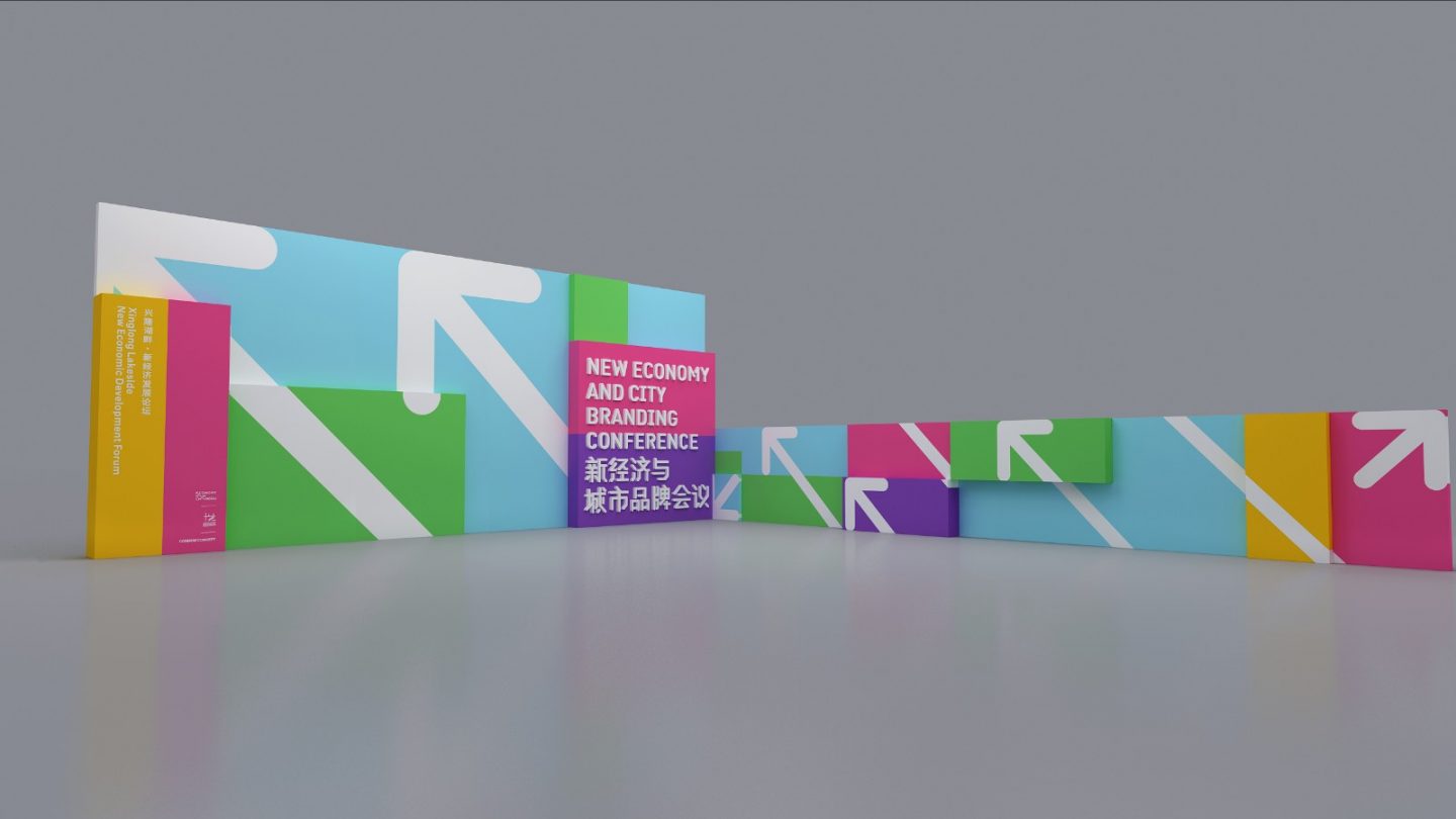 新经济与城市品牌会议的现场策划设计选用了很清新的色彩,主题区域的天蓝、明黄、草绿、粉紫、玫红,再加上向上的箭头设计,清新明了,提亮了现场的视觉效果。主会场的设计上,首先在视觉的选择上用了粉紫,年轻、轻松的视觉氛围又不失行业会议的高端大气和专重,在座位的设置上,直接选用了单人沙发卡座,更是凸显了嘉宾的尊贵感。睿智优雅的过道设计,再次拉升了整场会议的格调。