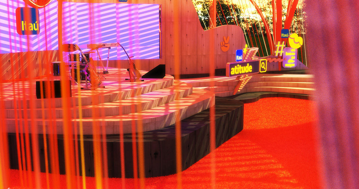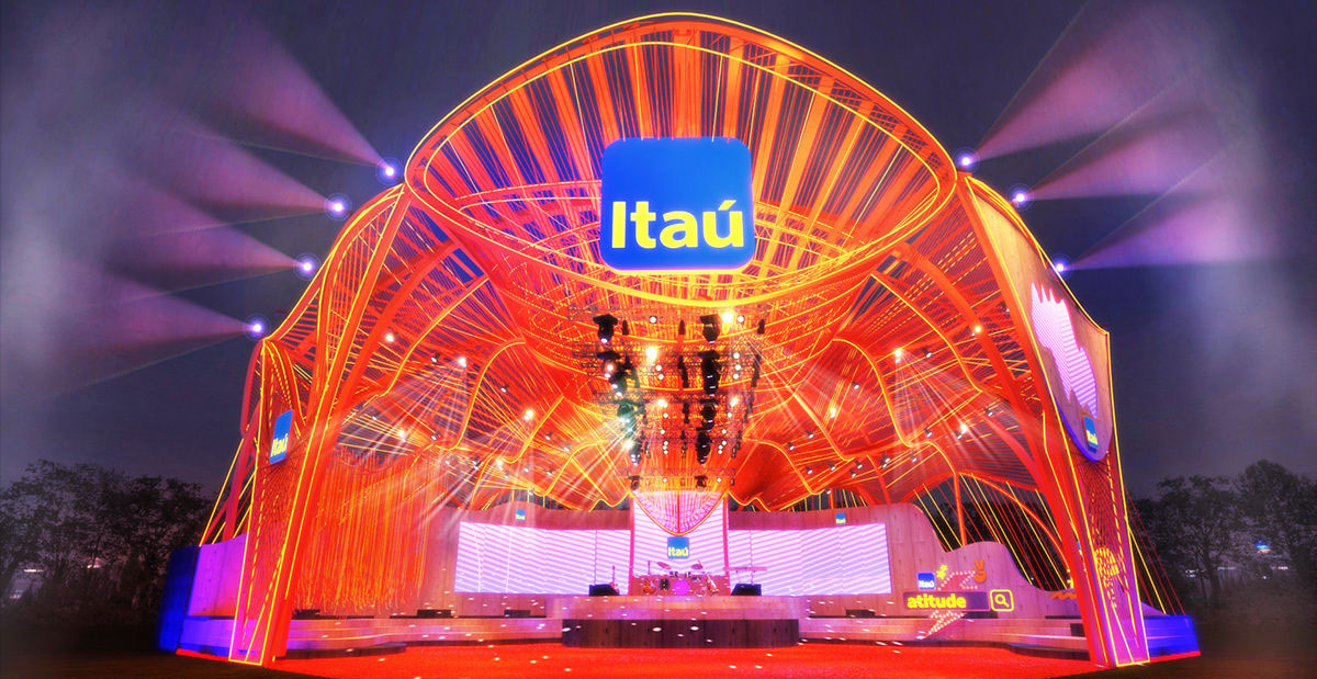 巴西第二大银行Itaú整了场摇滚音乐会,而在舞美设计上,更是大胆地突破了传统的视觉,大面积的橙色应用,更显得年轻、潮酷,摇滚味更浓。