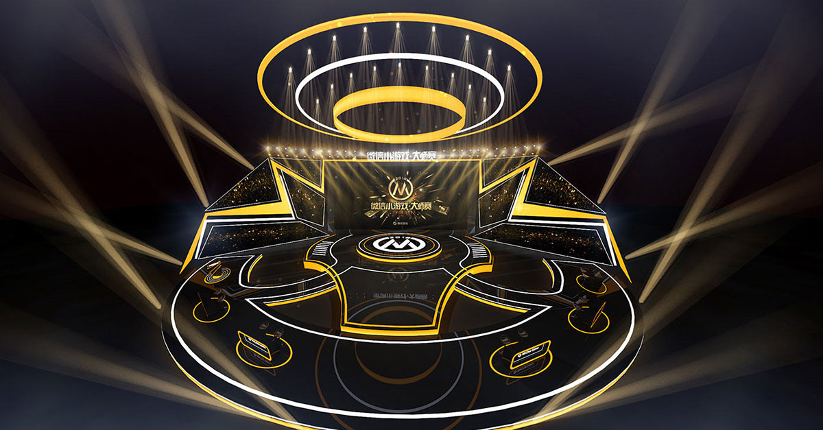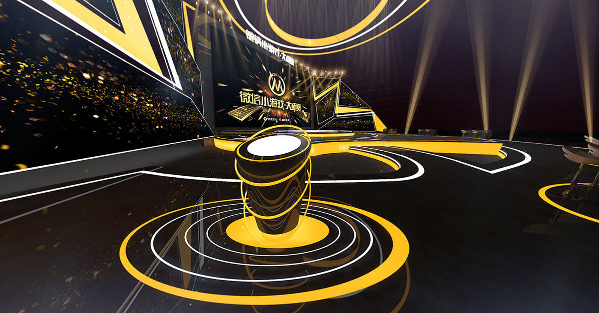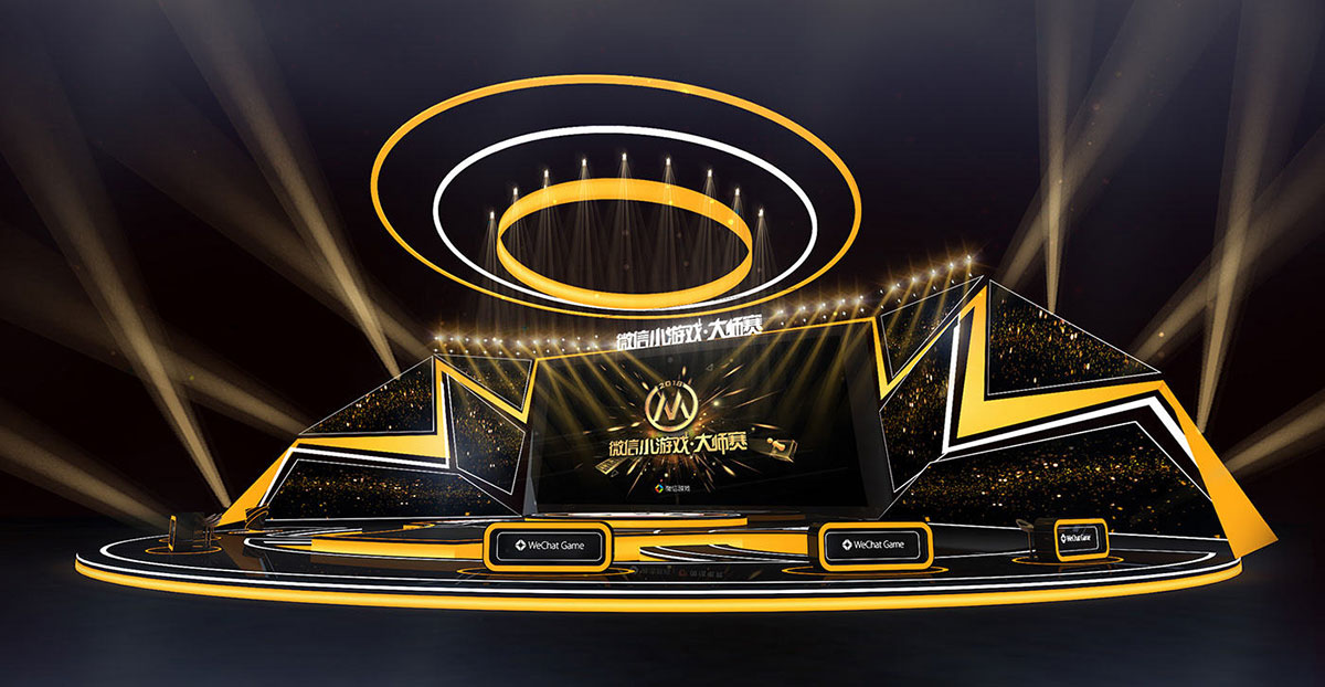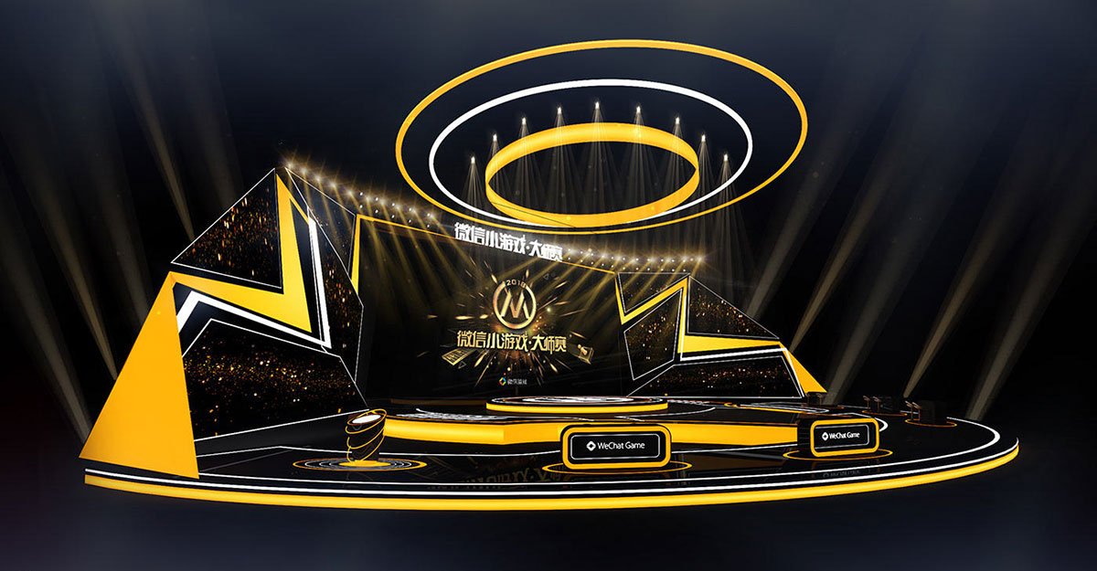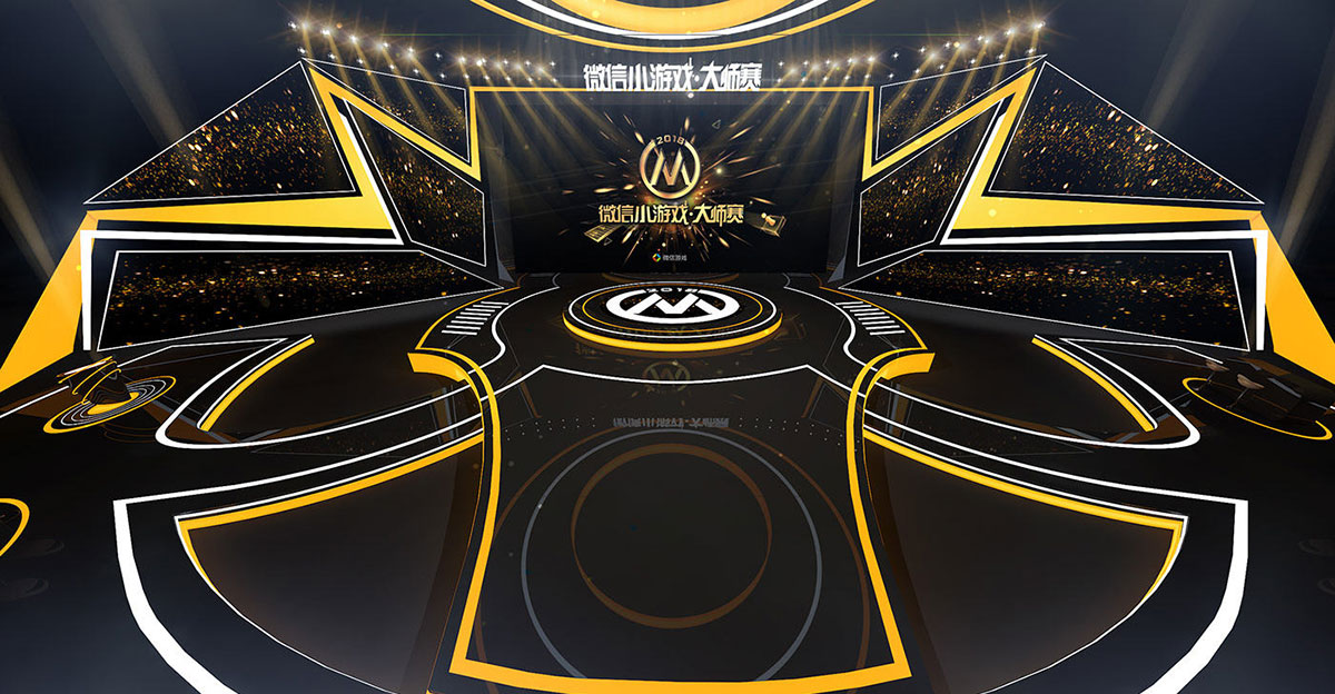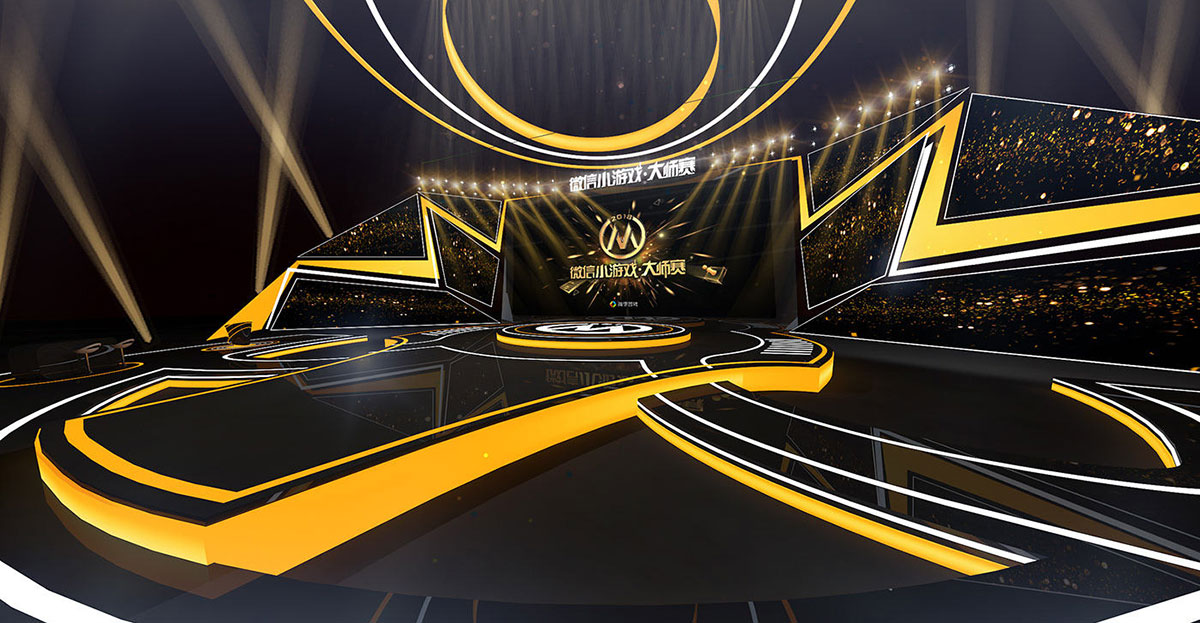 以明黄和经典黑为主色调的微信小游戏大师赛的舞美设计更显明亮和个性,两边明黄色的灯光犹如闪电般形状,为整个现场增加了张扬的个性主张,还把整体的光亮提亮了不少。
