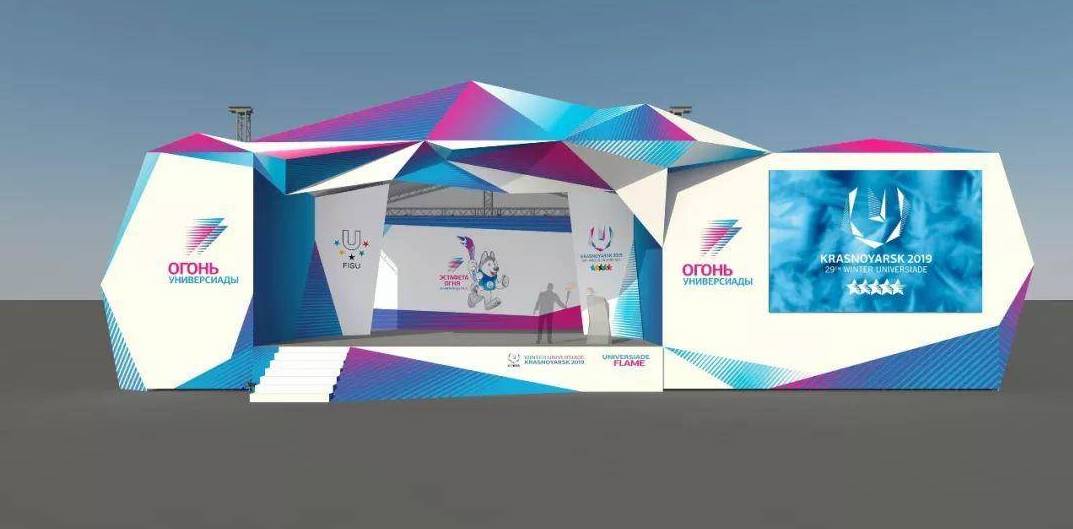 亮点:此舞台主要用于火炬手点燃仪式,在舞台正方面设立一座圆形的点燃道具。