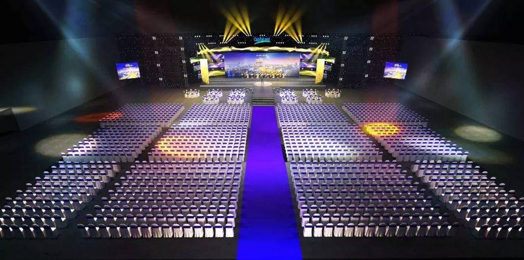 亮点:舞台造型主要采用弯曲造型向观众区进行延伸,将舞台与观众区融为一体。