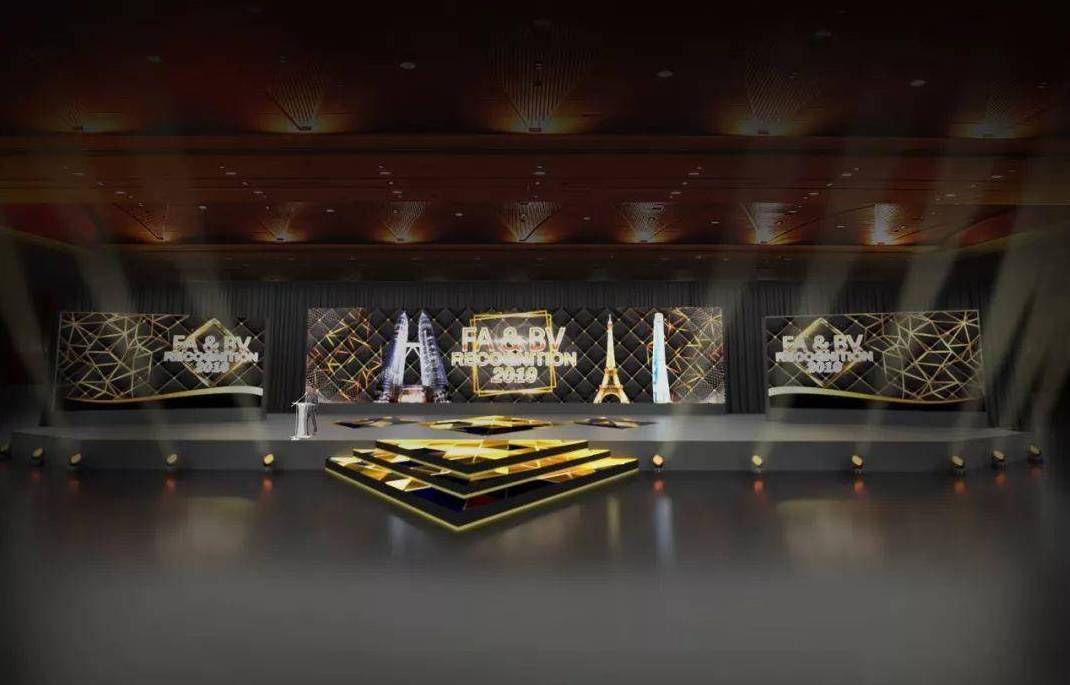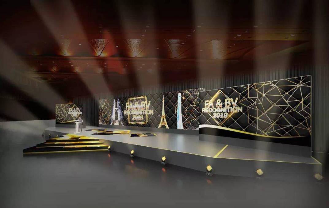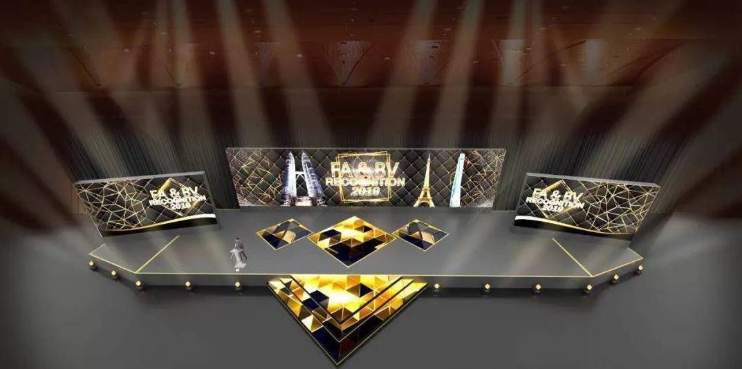 亮点:舞台设计上会用黑金元素的不多见,在这个舞台设计上,可以看到黑金元素结合纹理设计出来的高端大气。