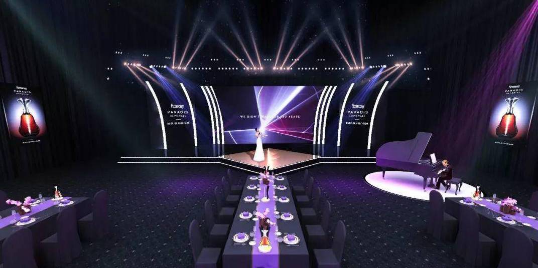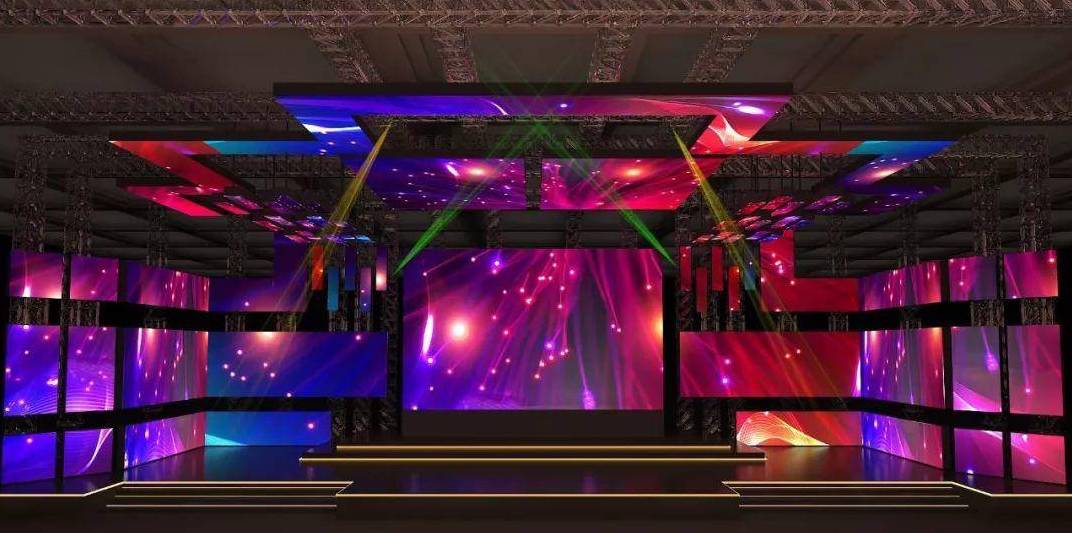 亮点:将舞台打造“全是屏”的既视感,结合场地天花板,给来宾带来沉浸式体验感。