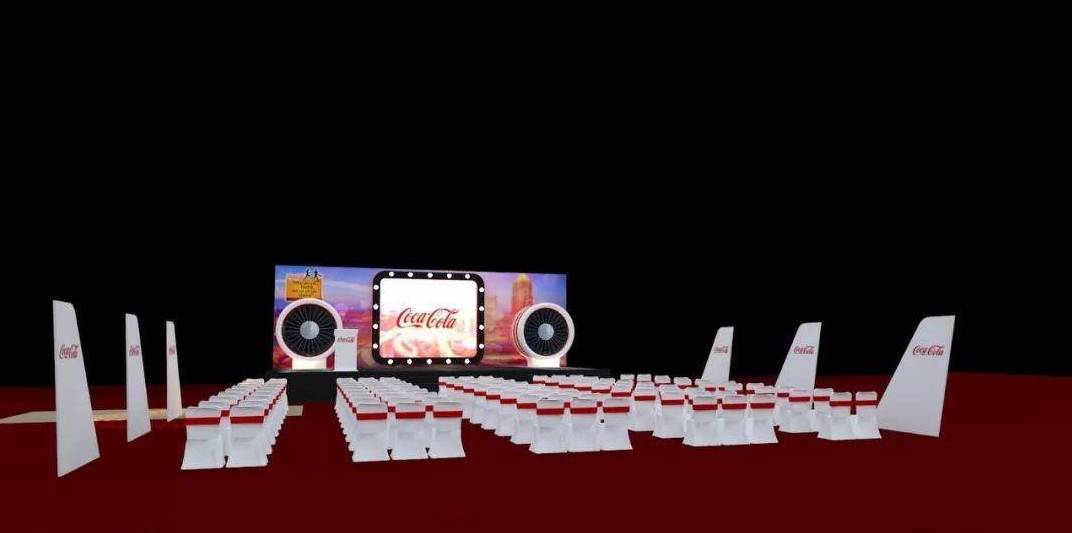 亮点:这是一场用飞机概念打造的主题式活动,舞台两侧分别用飞机两翼的涡轮风扇发动机进行设计。
