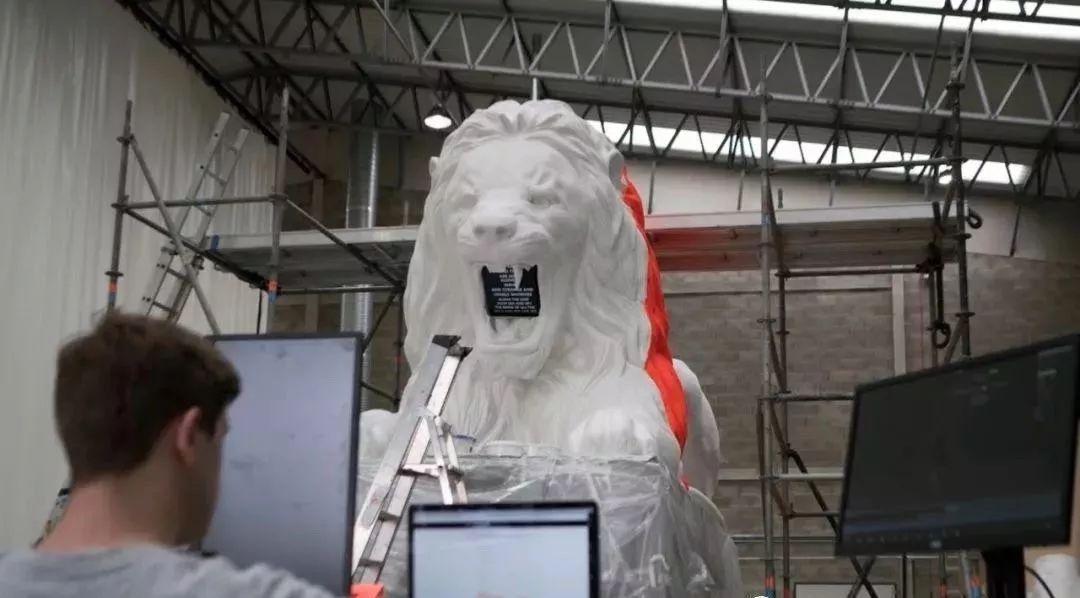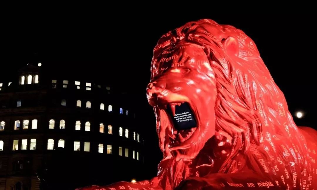 吼叫的狮子口腔中嵌入了一个LED屏幕,这个屏幕将在公众通过狮子旁边的屏幕上输入单词时显示诗句,为集体诗歌做出贡献。