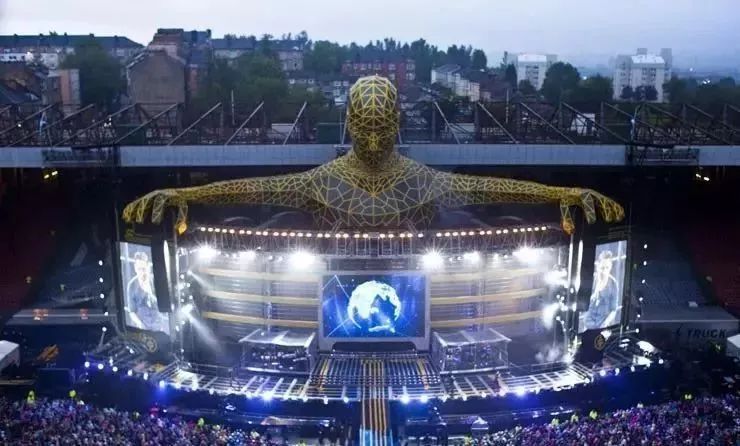 Take That乐队世界巡演的舞美置景设计中,气势庞大的巨型科幻人张开双臂拥抱住整个舞台,声势震撼。现场还设计了一个四肢可以活动可以“行走”的巨型科幻人,时而“倒地”充当舞台,时而站立展现自己高大威猛的风采,配合灯光,打造出了前所未有的视觉效果。