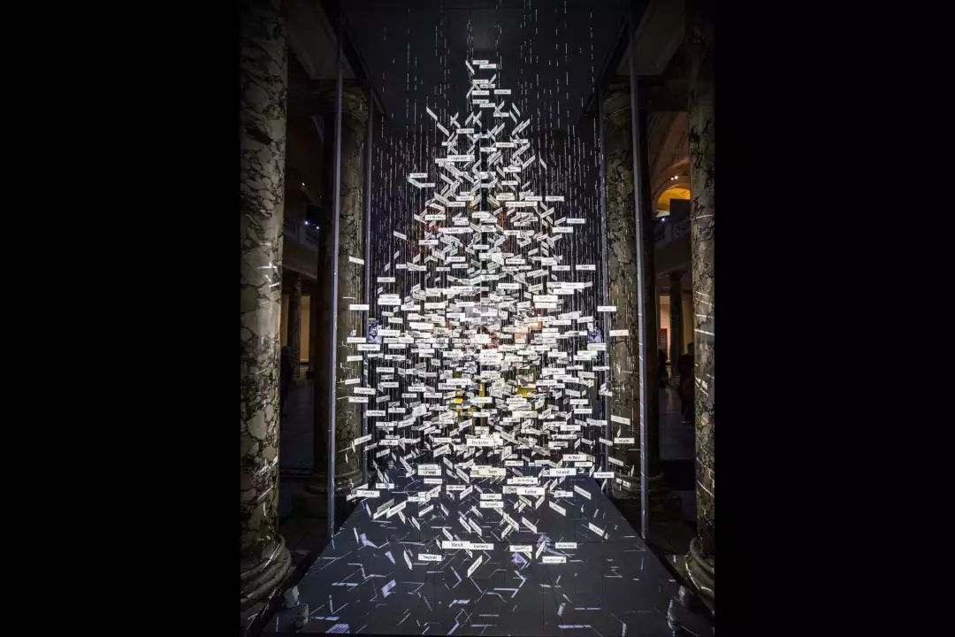 从早期人类留下的洞穴标记到格雷塔·图恩贝格( Greta Thunberg )发起气候罢工的瑞典议会,在Pitzhanger 画廊的沉浸式装置记忆宫殿上记录了至关重要的历史时刻。展览空间超过18米,使用大镜子使装置反射自身。这是一张详细的地图,它将过去重要事件的记忆具体化。