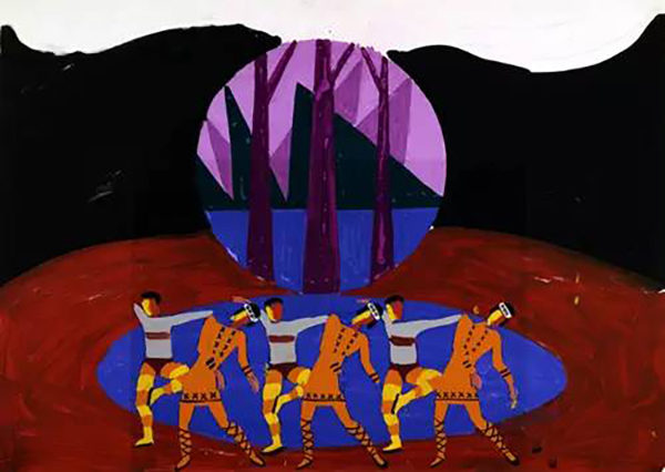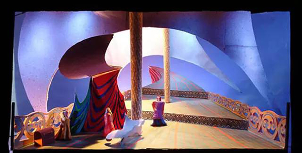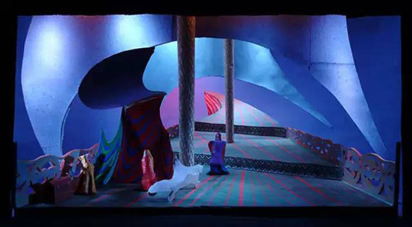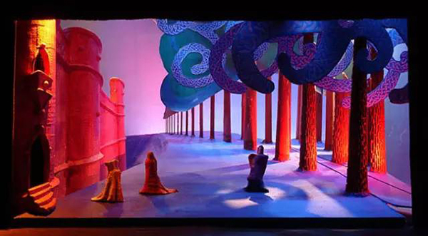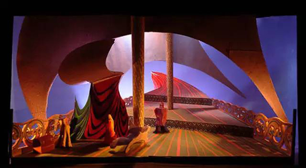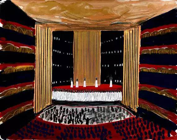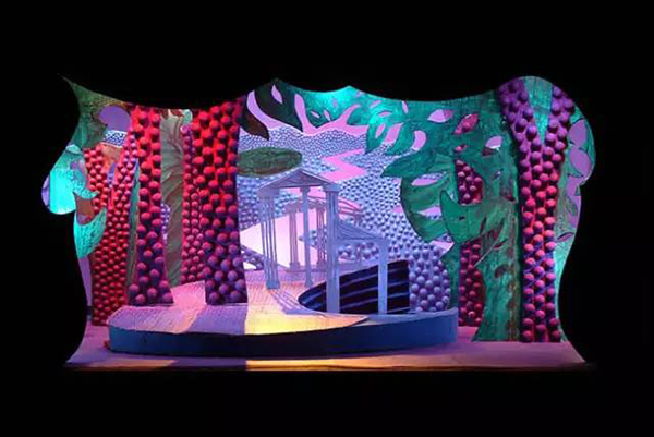 David Hockney(生于1937年7月9日)是英国画家,舞台设计师和摄影师。在20世纪60年代的波普艺术中他是一个重要的贡献者。霍克尼的舞美设计灵感来源于铜版画的艺术风格,舞台设计和服装均由铜版画的线条和交叉的影线所构成。他的设计方式,无疑是画家这种职业者从骨子里带出的“绘画性”。作为舞台设计者的霍克尼正在玩味着一个画家的思想。