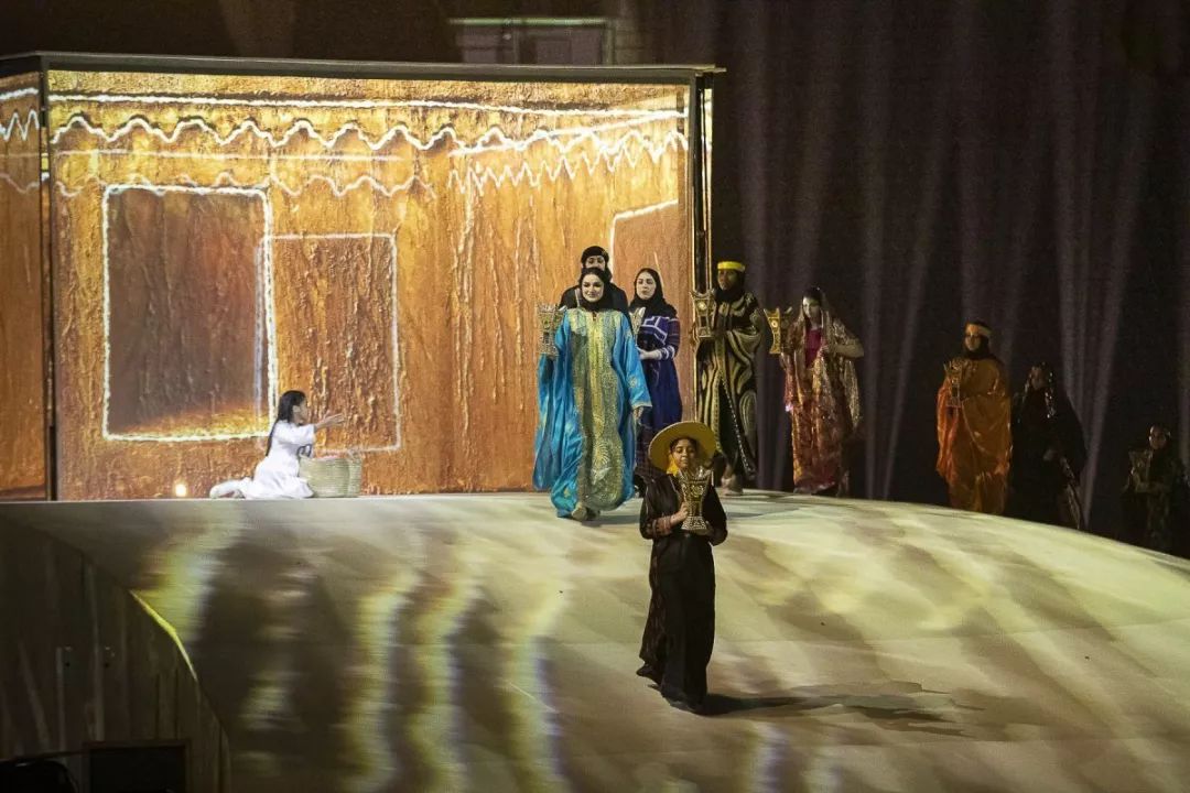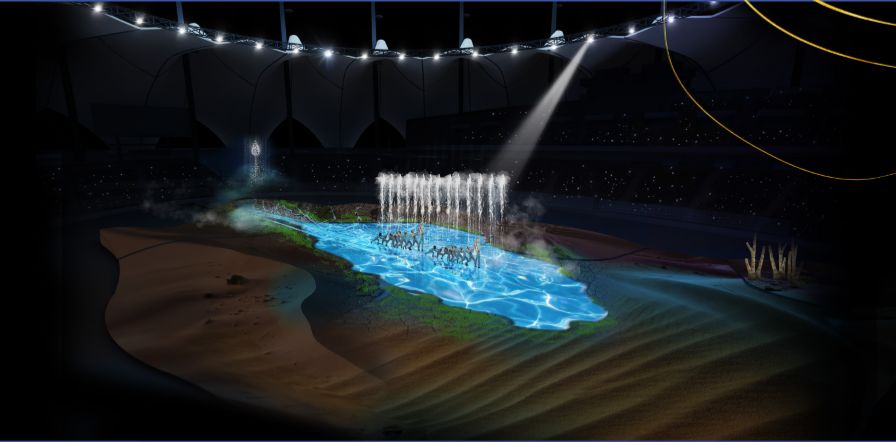 布景设计的灵感来自沙特阿拉伯多相的山地、沙漠、火山和海岸自然。这场演出共有488名表演者,600多套服装和250多件道具。