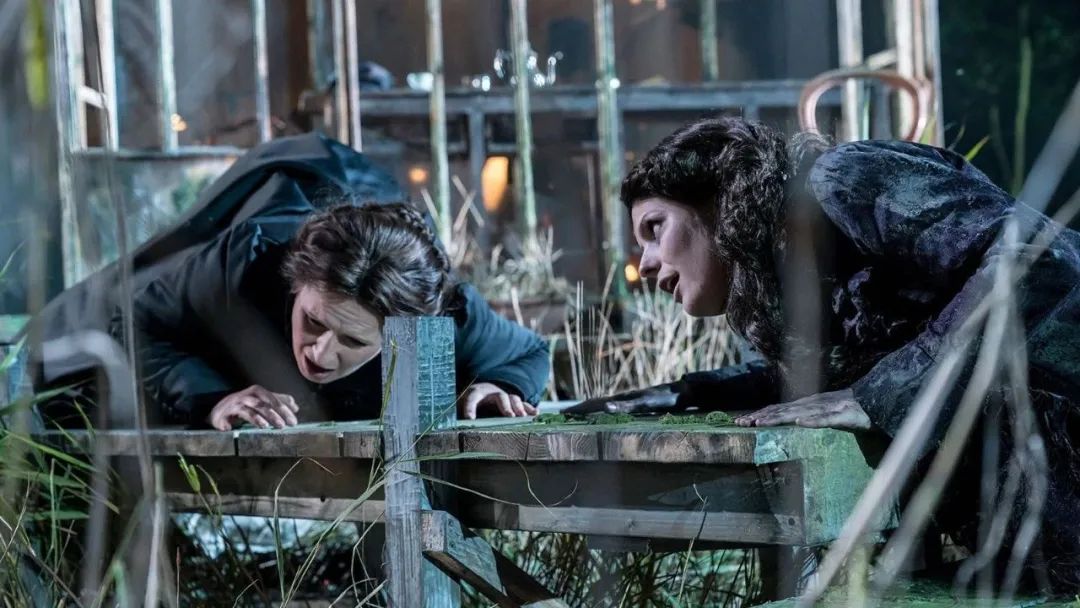 此次舞美设计师Soutra Gilmour借助露天剧场的天然环境,打造出一个幽深且充满破败和恐怖气氛的舞台房子。摄政公园露天剧院本身充满古老气息的木质走道与自然景观呼应让舞台布景显得愈发神秘。