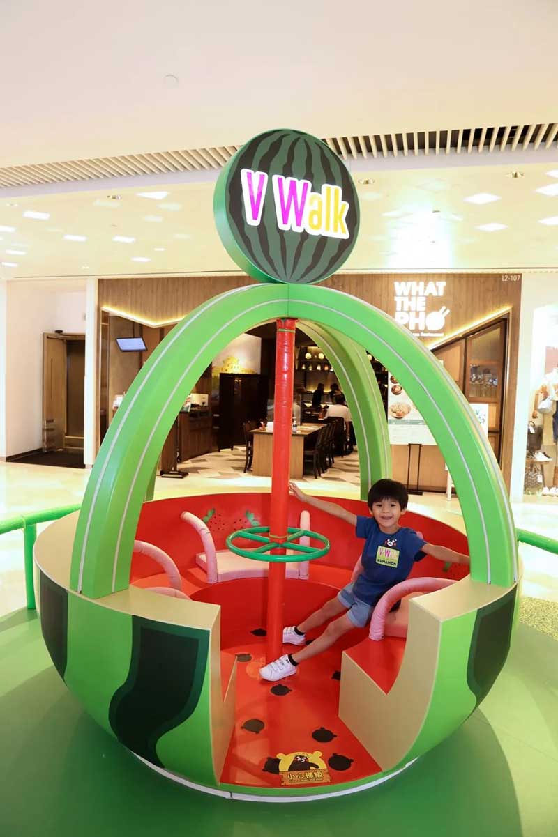 场内共设有 8 大主题装置及打卡位,大小朋友可与 Kumamon 一同化身小小农夫,在水果主题互动装置中寻找惊喜,体验田园种植的乐趣。人见人爱的 2.5 米巨型 Kumamon 化身成至萌农夫,偌大的身躯瞬间吸引全场目光,成为大家争相打卡的对象!到访农夫 Kumamon 的果园,大人及小朋友们更可与 Kumamon 一同采集新鲜美味的提子及士多啤梨,享受至 Fresh 亲子时光。快爬上农庄内的士多啤梨瀡滑梯,细看种植士多啤梨的成果,感受被满满士多啤梨包围的甜蜜感!圆圆的西瓜正好用来搭建氹氹转,重现经典的公园游戏,旋转时更渗透出阵阵冰凉感!