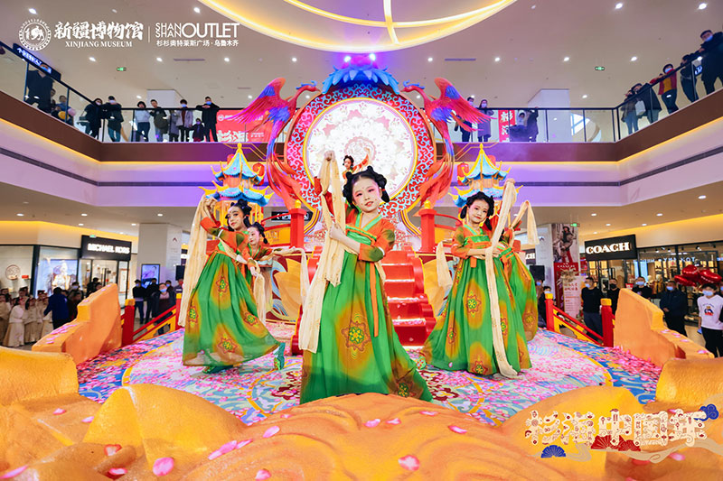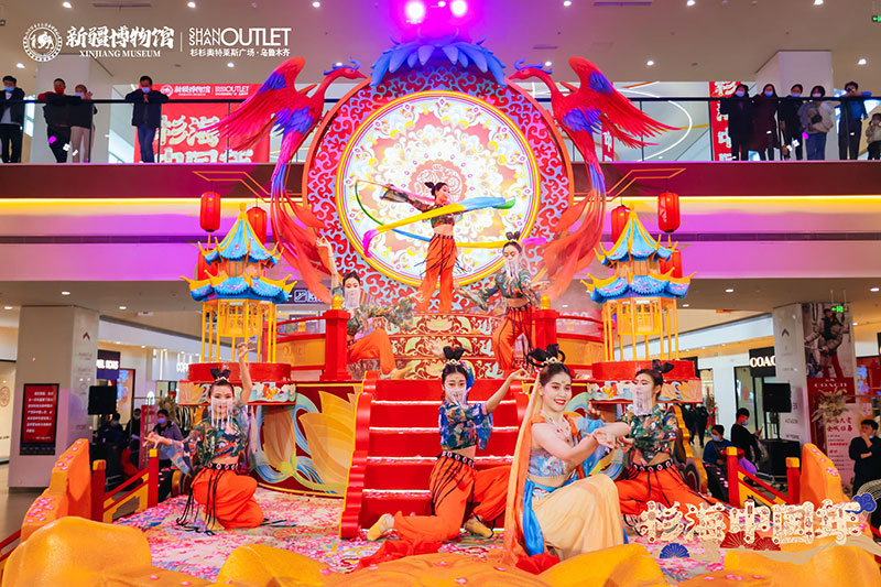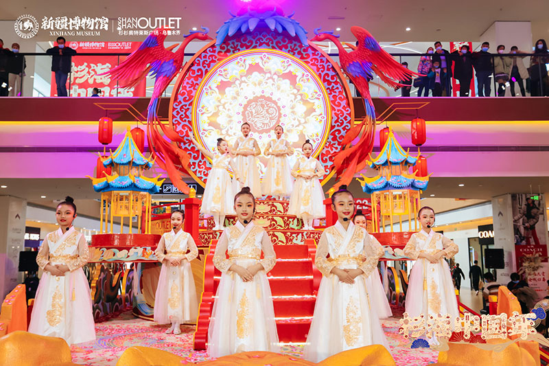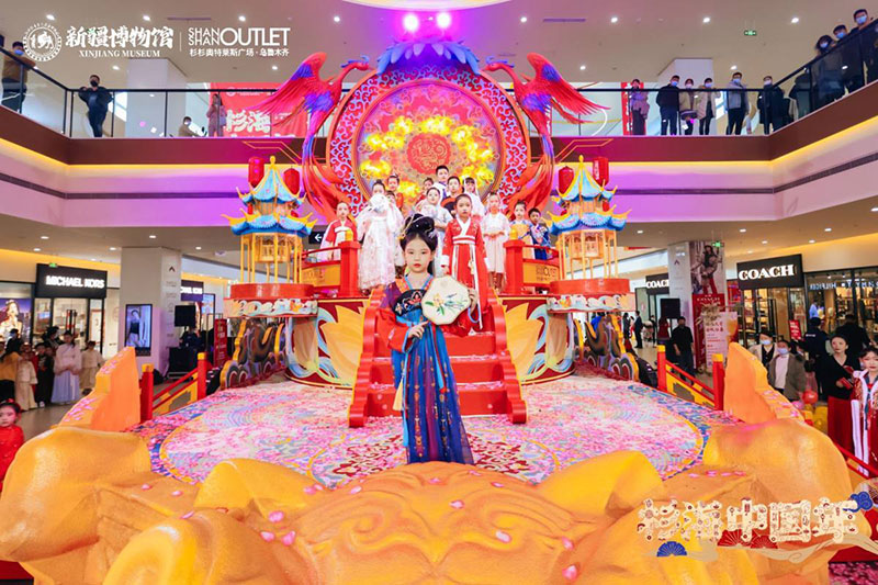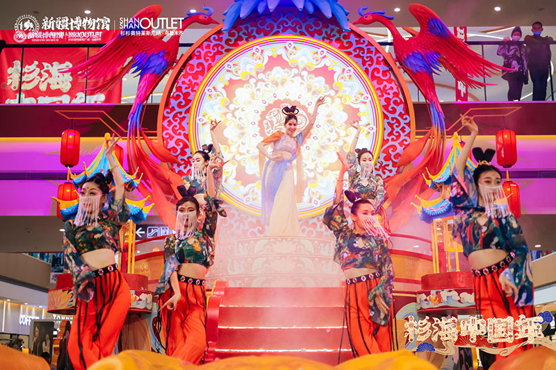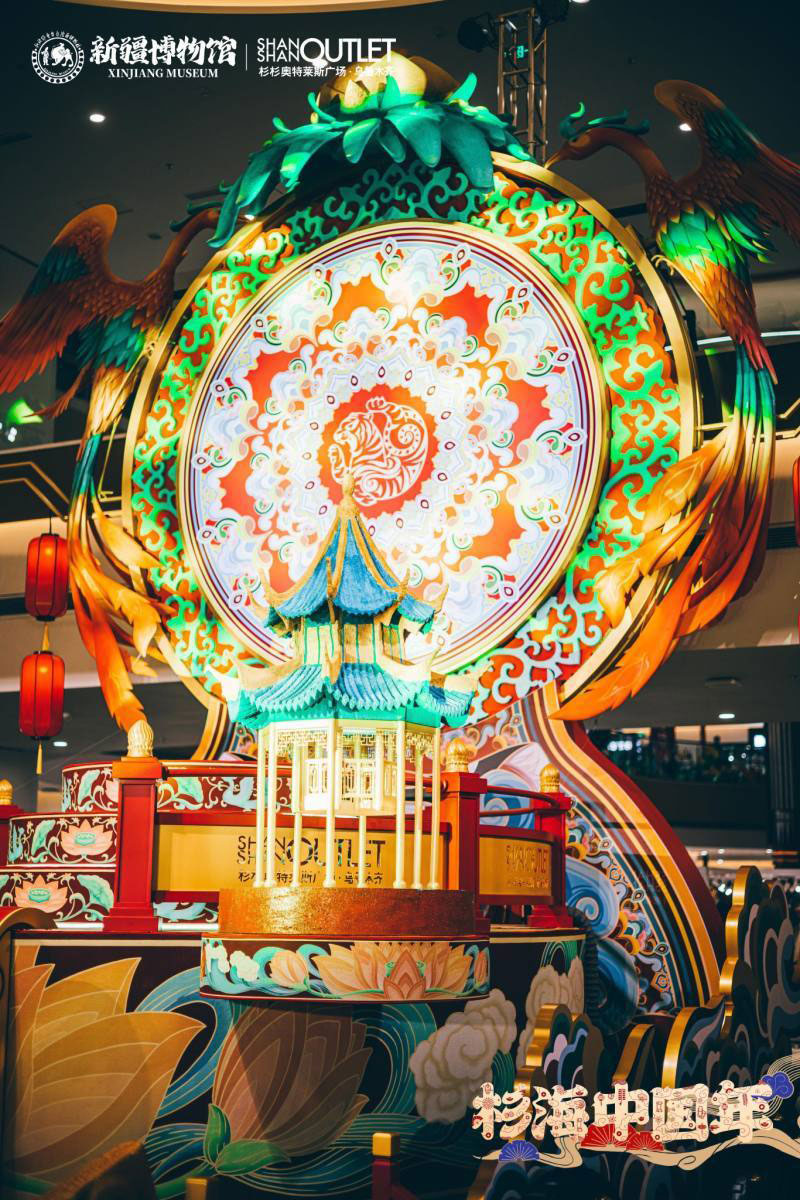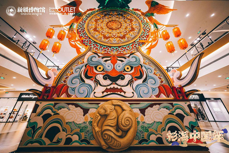“神驾凤栖虎跃拔车,绮梦疆湖诞生”以一级馆藏文物战国虎纹圆金牌为原型设计的潮虎想象新年文创系列,开启一场杉海中国年。新博文创市集、四潮虎神、萌宝国潮迎新、歌舞升平国风演绎、潮虎人偶巡游互动等诸多节庆活动的加入,合力营造一片盛世佳节的繁华盛景。“载万国汇丝路,展华夏承千年”弘扬中国传统文化,利用节日的纽带,将历史、人文、城市与活动实现无缝链接,让文物真正的活起来。