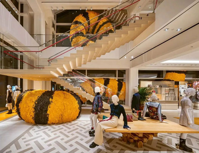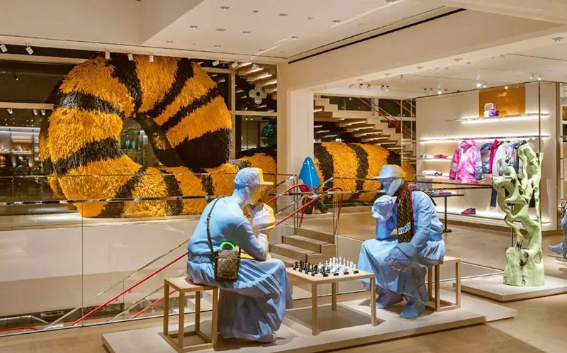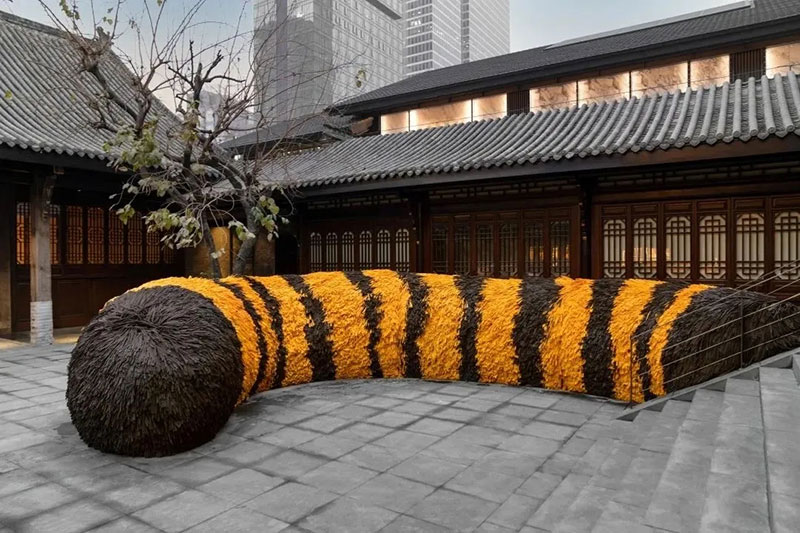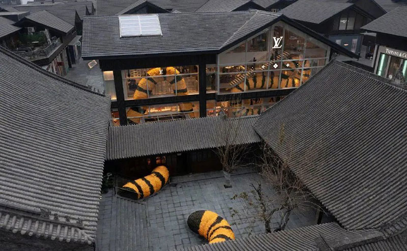 这条巨型老虎尾巴位于成都远洋太古里,是LV为迎接虎年特意制作的艺术装置,从俯视的角度看巨型老虎尾巴好似在建筑间游走。从大门到庭院,又一直盘旋到顶层阁楼,无论哪个角度看都相当的震撼。