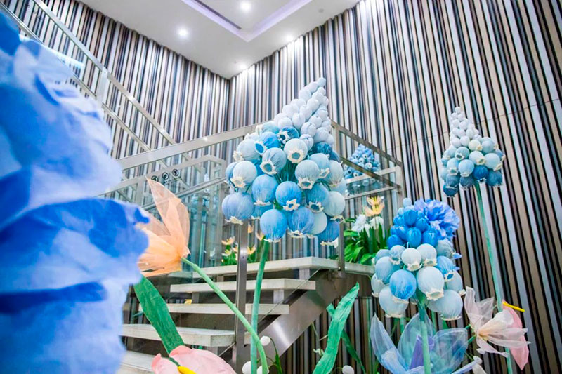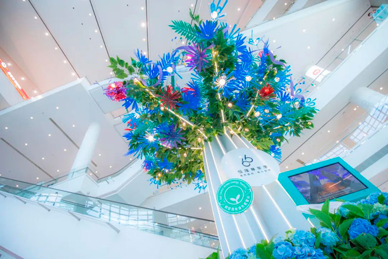 济南恒隆广场东翼L1中庭与蚂蚁森林连手打造的“绿色能量站”,透过围绕碳中和及生物多样性的互动装置及展览“1t绿色能量球”等,唤起大众对生态保护的认知,同时了解恒隆对可持续发展的不懈努力与贡献。而擅长以自然和植物为设计元素的艺术家Amandine Grandcolas,则为此次展览设计了“绿色能量之树”及各式各样的花朵造型,其中花朵部分均由回收废弃塑料手工制作而成,希望以艺术的方式表达对环保的关注,践行绿色生活的理念。