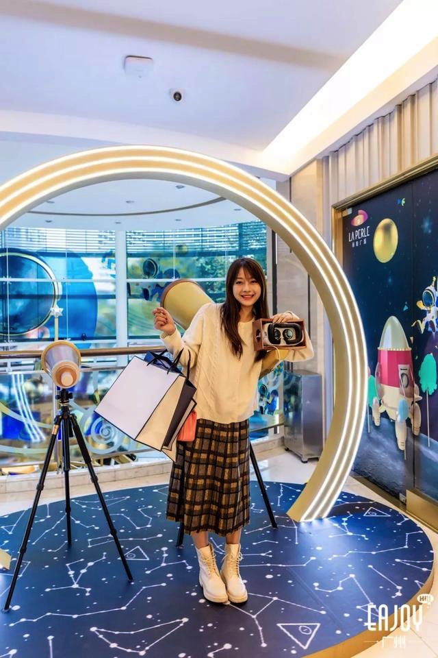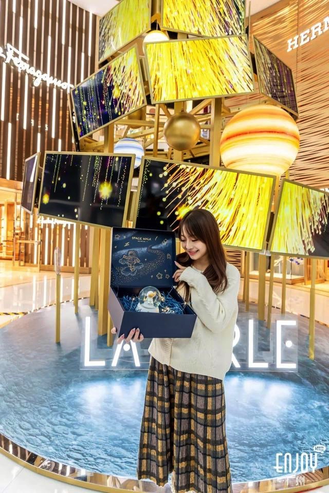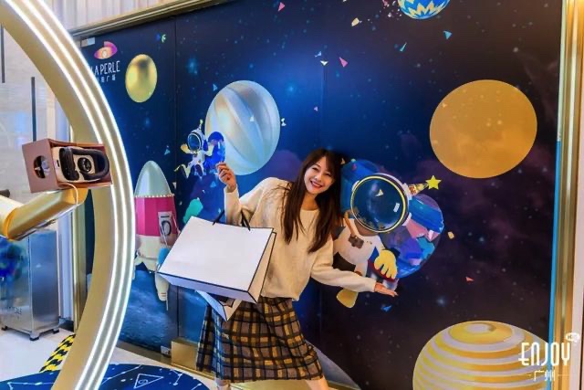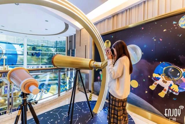 今年丽柏广场“幻耀星姿圣诞季”,整个商场摇身一变,成了一个“宇宙主题”的圣诞打卡地,4个宇宙主题的打卡点,免费拍、免费玩,出片率超级高,现场参与活动还能订制你的专属圣诞卡。而每当夜幕降临,华灯初上,商场内外的灯光照射在打卡点上,效果更惊艳,拍照更好看。丽柏广场还超会玩,让女生们没有抵抗力的幻耀星盒。为了更好地观察宇宙星空,在二楼观星台,还准备了AR望远镜,让你将宇宙星河尽收眼底。墙上的贴纸也别错过,小小的宇航员,可爱溢出屏幕,拍出来的效果比想象中更上镜哦。还有火箭筒造型的圣诞包裹传输站,你可以在这个酷炫的信箱中,投入你的亲手写好的圣诞心意小卡片,圣诞期间会从中抽出幸运儿,届时到现场参与“幻耀星姿圣诞Party”哦,赶快去寄信啦。最后再经过圣诞树,直走来到中央水池,闪烁缤纷的“银河系”瞬间映入眼帘,从上倾泻下来,直穿到地下的喷泉,点点星斑铺满整个空间,仿佛汇聚了美丽的星球在这里开派对,浪漫得有点不真实。
