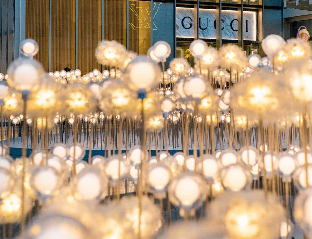 华灯初上时,港汇恒隆变身为灯海,这里被这抹最炫的光点亮,光影攒动之间,港汇恒隆广场茕茕孑立。火爆各大社交平台的LOUIS VUITTON圣诞装置也在港汇恒隆南座中庭闪耀呈现,这颗LV球型圣诞树由LV经典Monogram组成,简直不要太吸睛。站在巨型绣球花型的圣诞树前拍照,你就系最迷人噶!