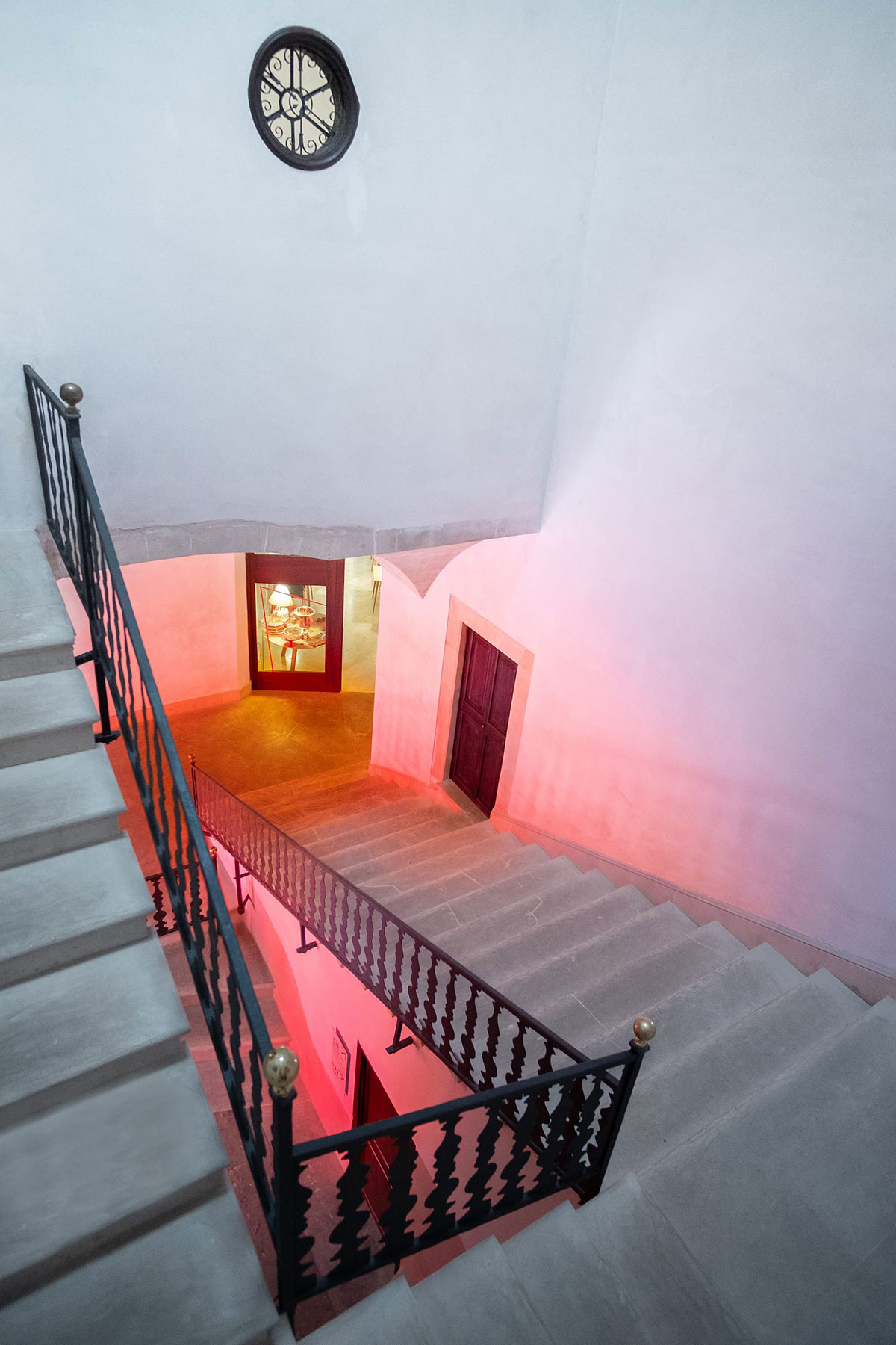 Can Balaguer是围绕庭院设计的一座通过石头拱门来组织节奏的古宅,因为那些拱门太美丽,因此想要设置两个面对互为反向的几何图形装置:弧形和悬链线。它们两个一个对抗重力,另一个与之合作;一个需要质量,而另一个需要轻盈;一个被压缩,另一个被拉伸;一个是不透明的,而另一个可透光;一个提供阴影,另一个投射颜色;一个从地上长出来,另一个从空中垂下;一个已经在那儿了,但另一个并没有。