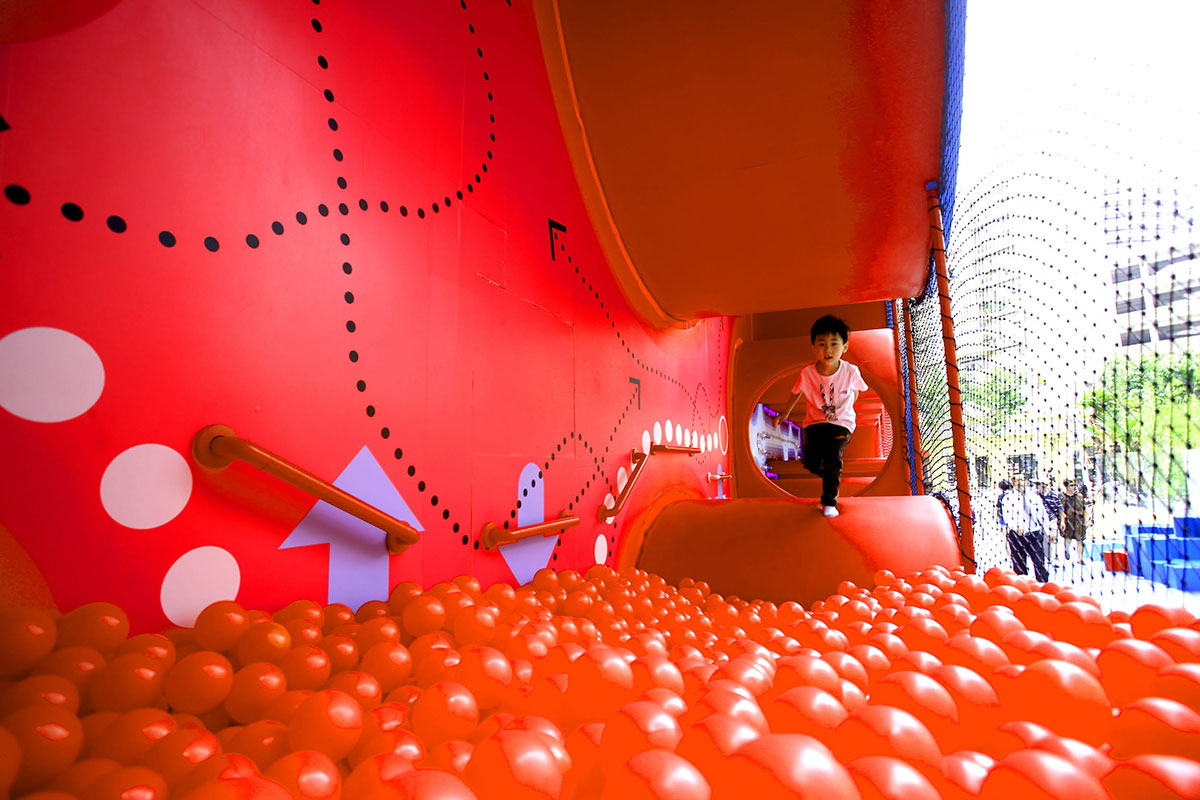从一开始,大宁国际商业广场的营销团队就坚持要创建一个创新的儿童游乐场。超出任何典型游乐场的意想不到的事情。一项干预措施本身将会把一条行人流量差得不行的步行街变成一个吸引人和繁忙的“空间”,顾客可以带着他们的孩子和家人,花一些时间和其他孩子和家人互动,并在那个地方重新启动行人流量。
