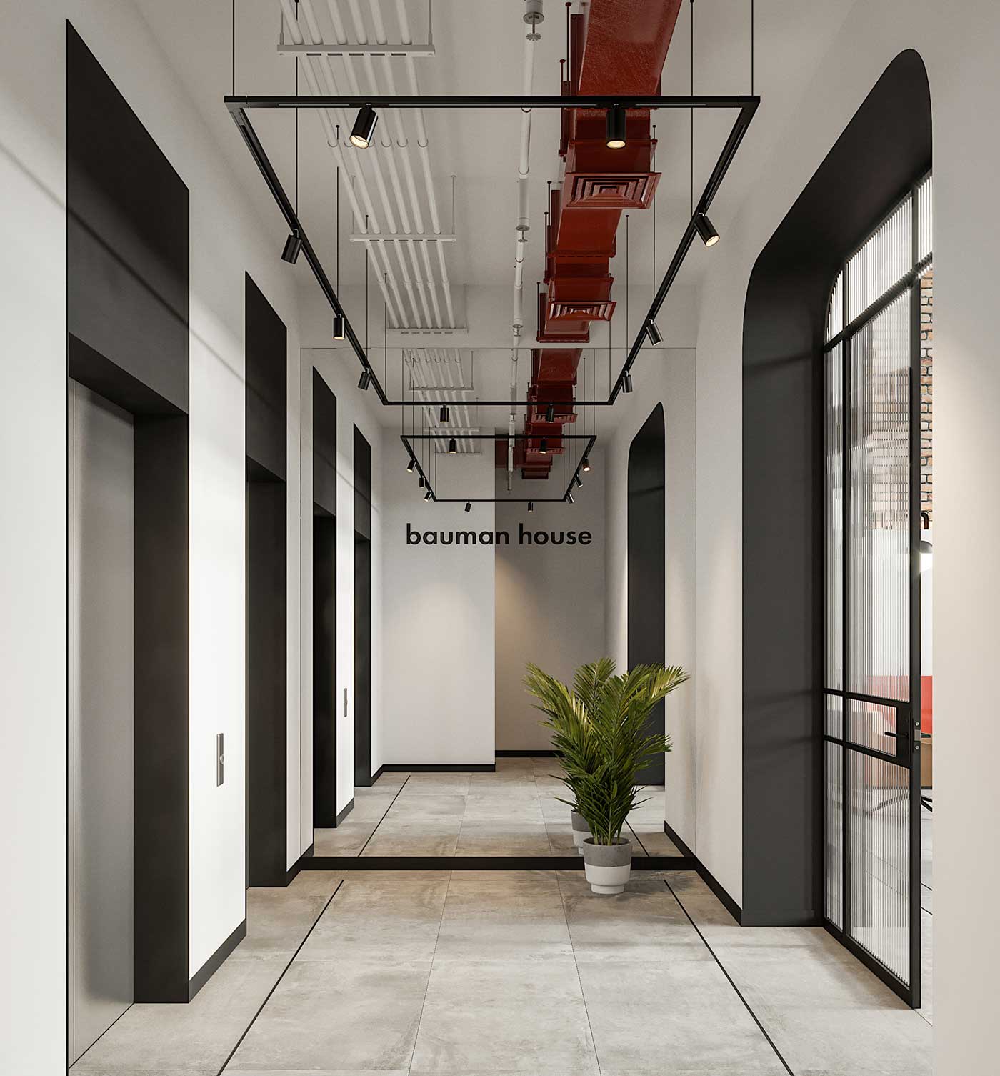 bauman house概念店位于莫斯科中心一条繁忙的商业街上,由最初的两家商店合并为现在的一家,留下了一个天花板高度为5米的商店,并添加了墙面石膏,以显示原始的石头和地砖被人字形实木地板取代,并且用于展示产品的家具也是由大理石、金属和木材等固体材料制成的。