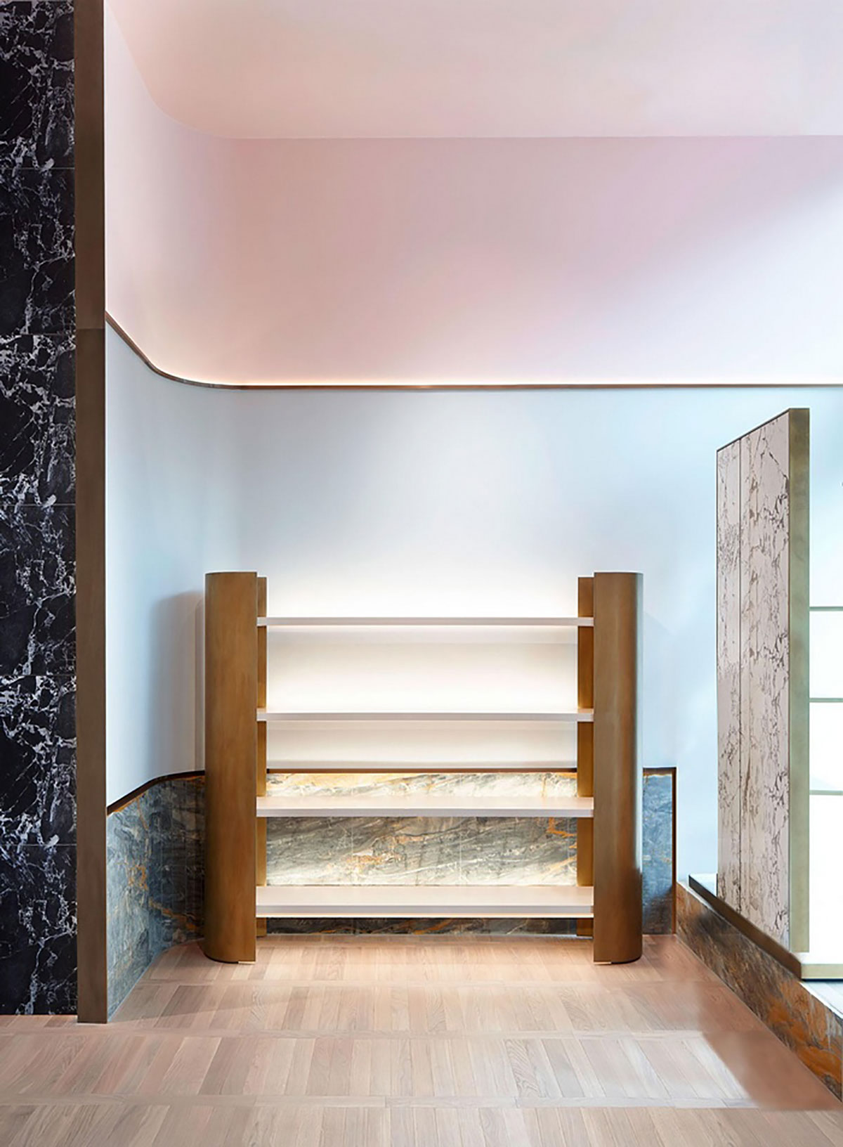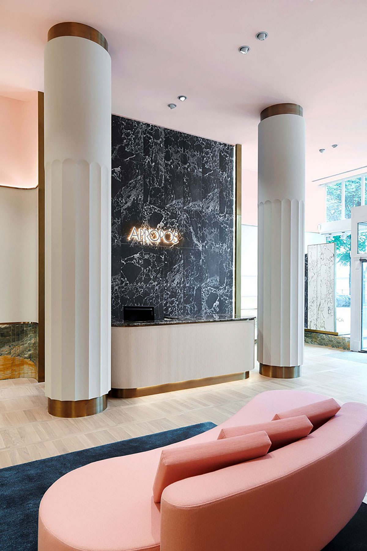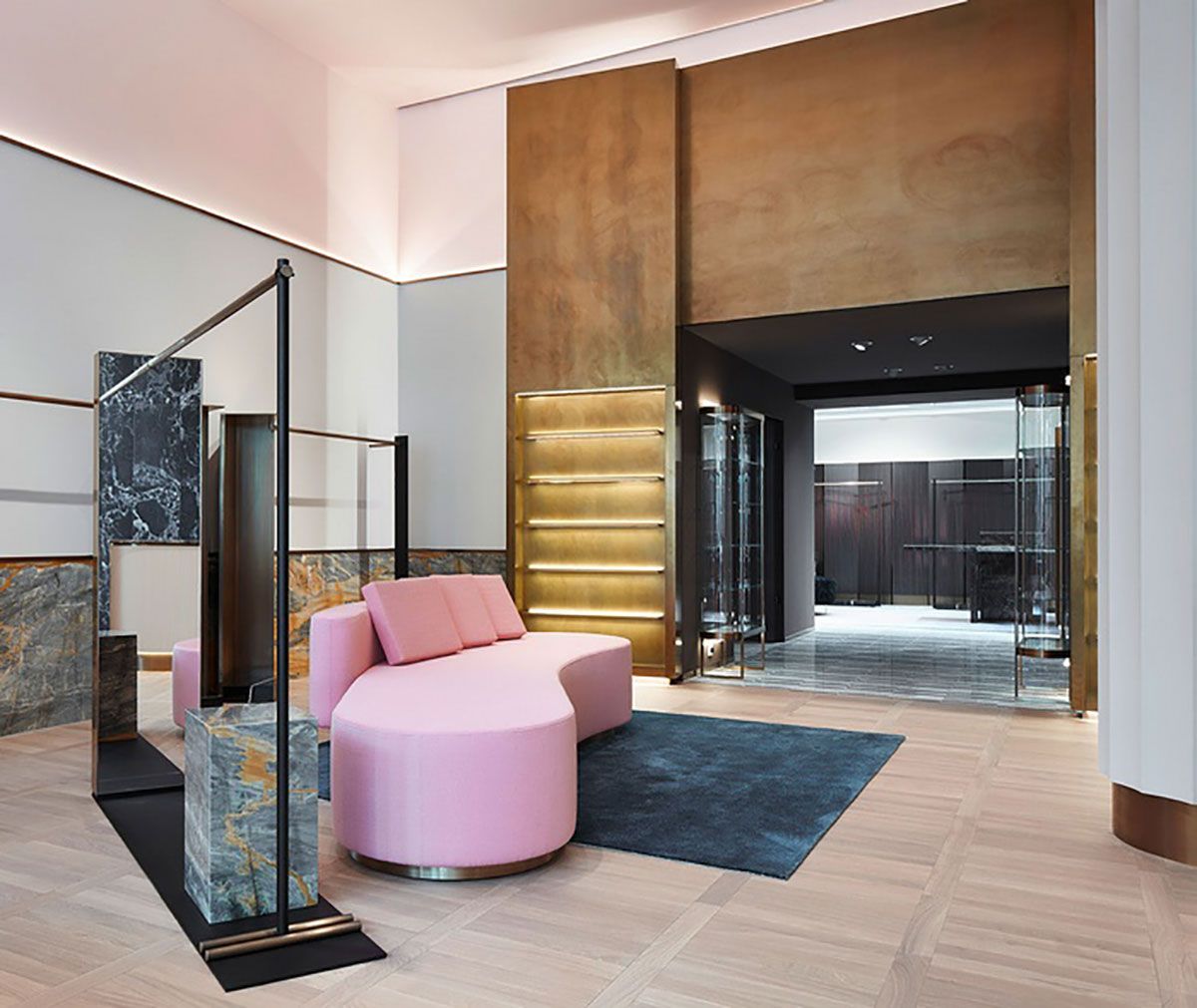 整个空间设计就像一个豪华公寓而不是商店,就像一个长而精致的客厅,灵感来自原始的空间框架,因此它继承了建筑的一些原始元素,宽敞明亮的空间窗户面向湖,景色优美。 APROPOS不仅仅是一个概念店,它也是一种生活方式体验,在用新古典主义的形式诠释着APROPOS男士是一位时尚成熟绅士的意境。