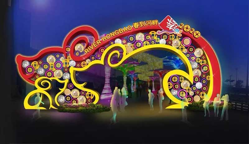 欢迎莅临春到河畔2020!今年是金鼠年,入口拱门的整体设计,突出造型可爱,曲线玲珑的金鼠轮廓。十二生肖中,鼠扮演亲密的角色。它们一家大小正在戏耍,其乐融融,突显亲子关系的重要性。拱门上新旧硬币的图案装饰,祝福大家新的一年繁荣昌盛。我们更希望春到河畔2020能让您与家人心情愉悦,尽兴而返。