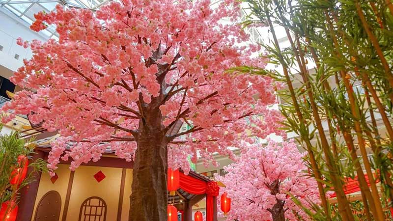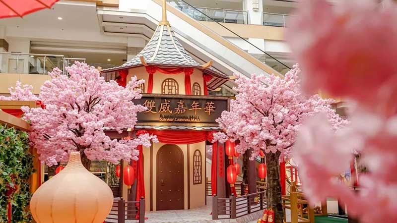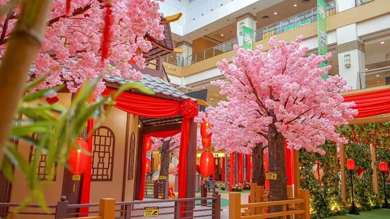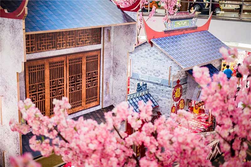 今年Sunway Carnival Mall布置成“桃花村”的新年装饰。让人仿佛走进世外桃源的感觉!