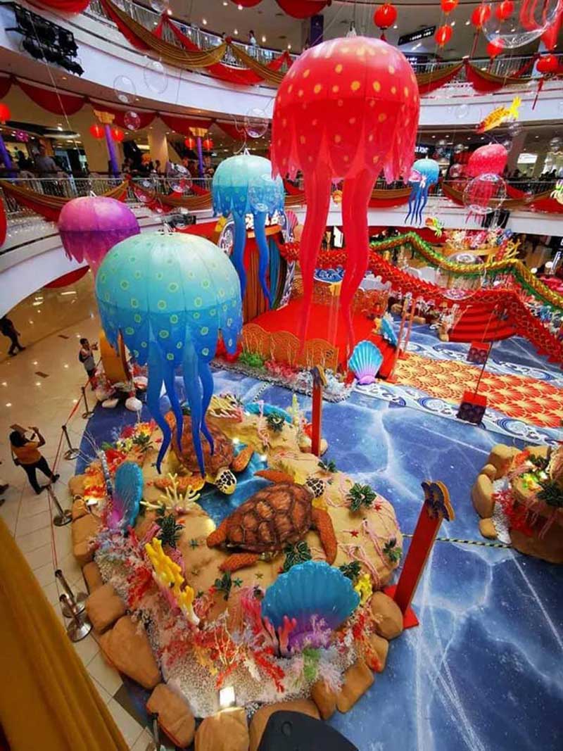 今年Queensbay Mall以海底世界为主题设计出海龙宫的新年装饰,场景中有大量的海底生物,让你畅游海底世界。