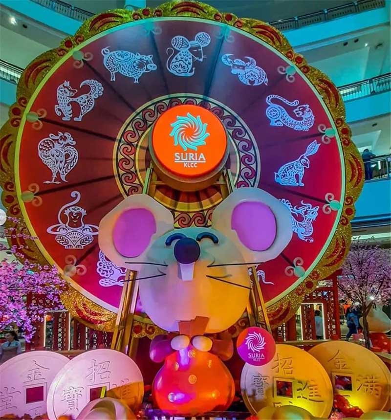 今年新春,一众换上新春装的萌鼠在Suria KLCC Mall与你一起喜迎鼠年,可爱的老鼠身后有一个印着12生肖的大轮盘,四围也以桃花树为装饰,走在其中仿佛来到了桃花源,超有意境!